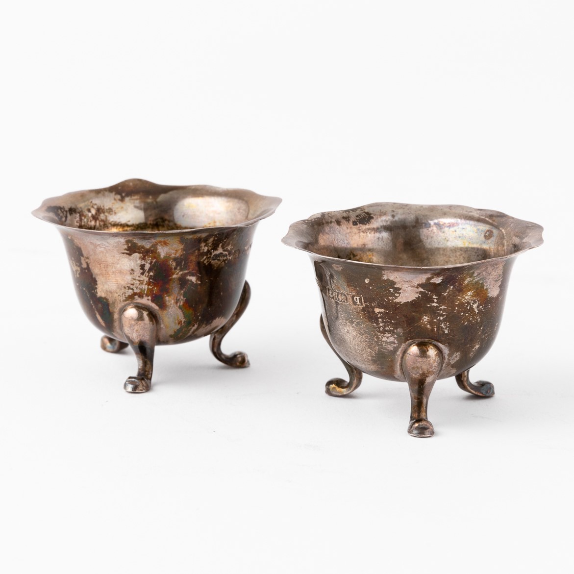 Coppia di saliere. Argento fuso e sagomato. Bollo della città di Birmingham per [..]