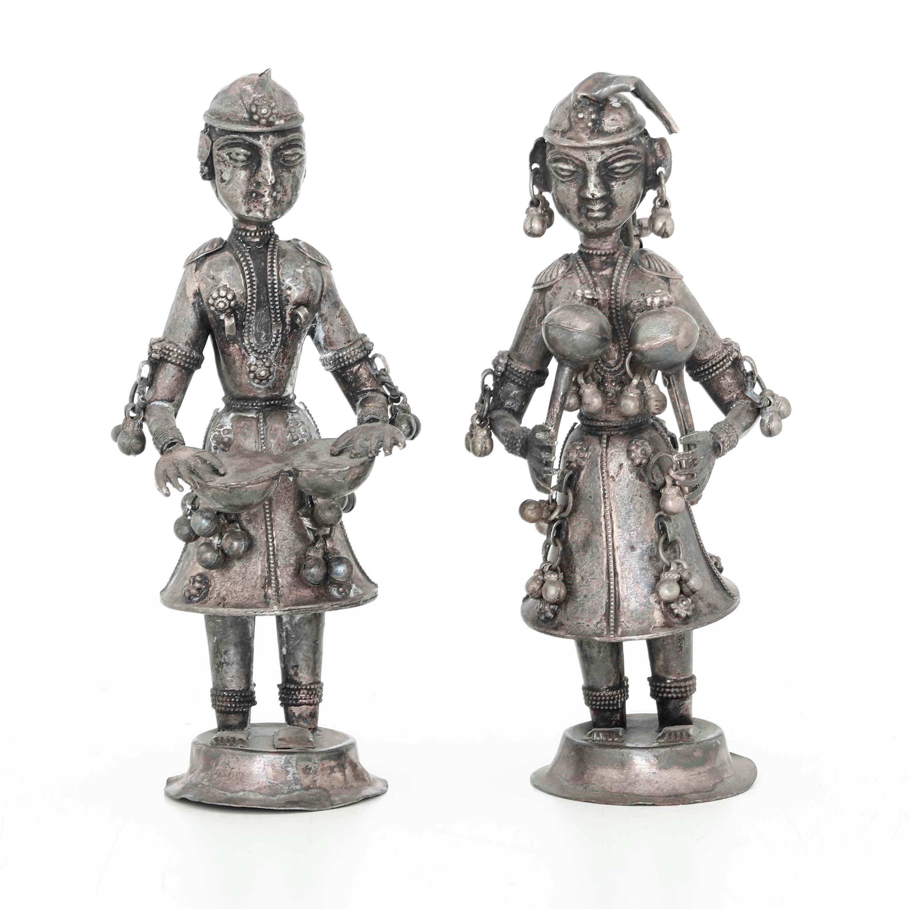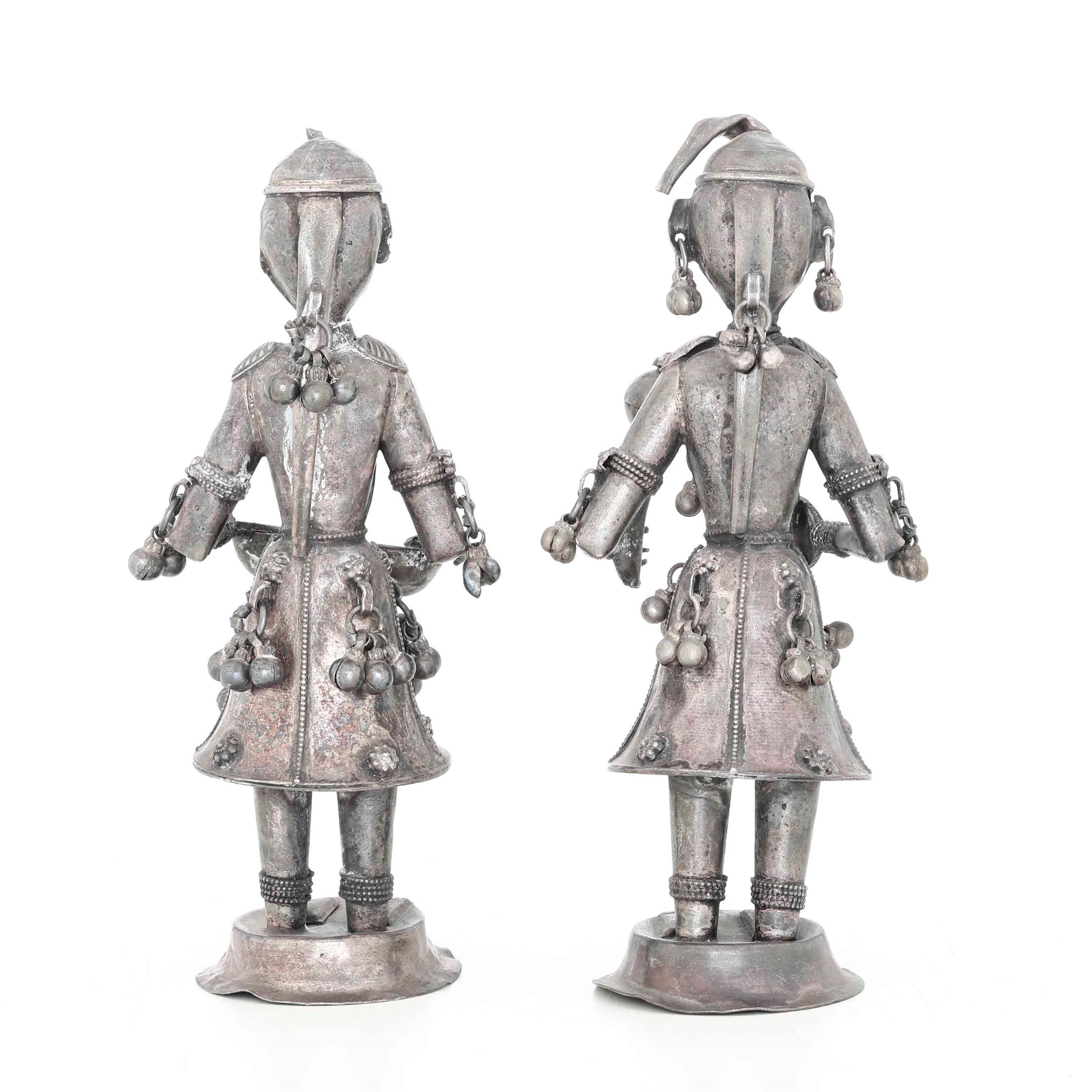 Coppia di suonatrici in argento. Arte indiana, XX secolo.