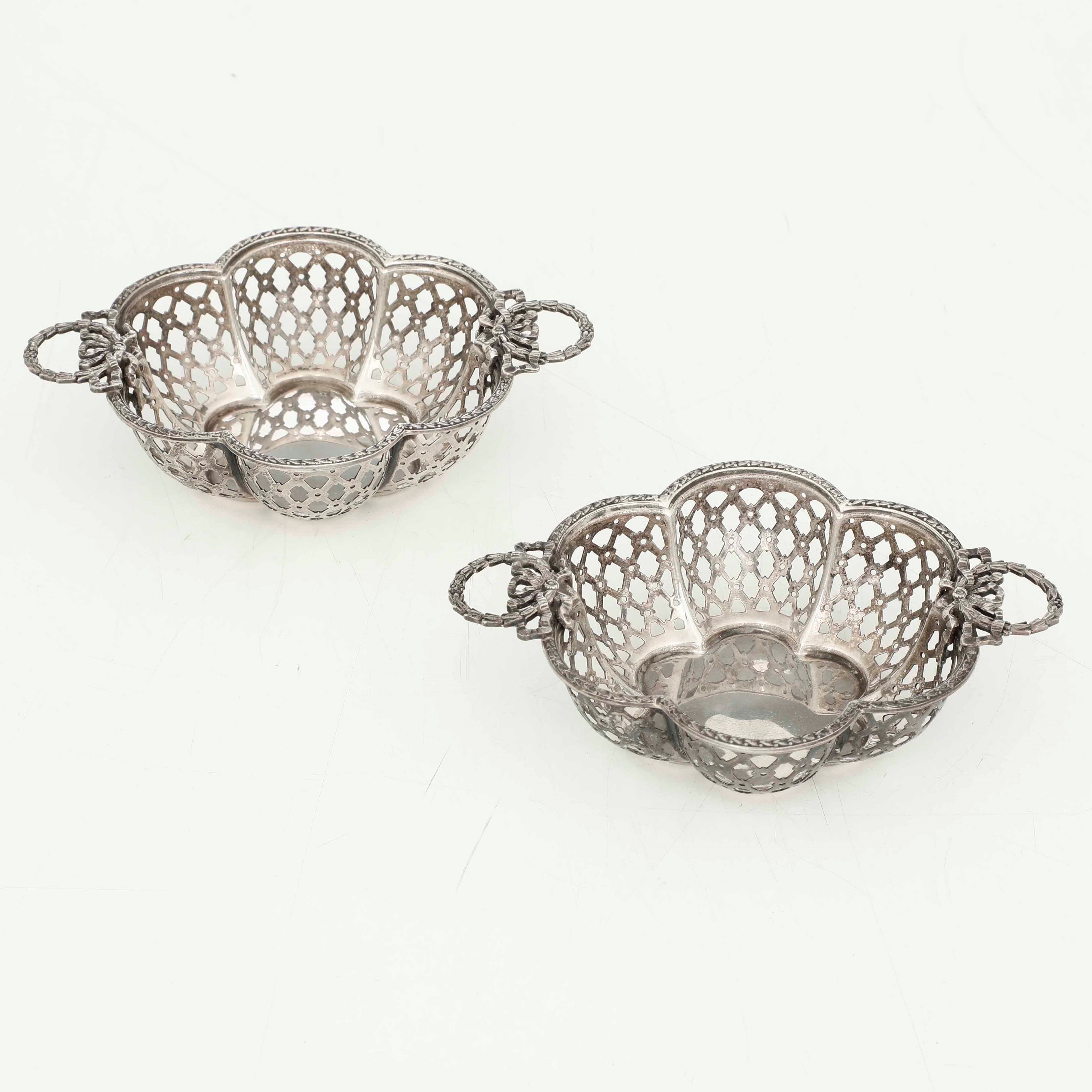 Copppia di piccoli cestini. Argento fuso e traforato. Birmingham XX secolo