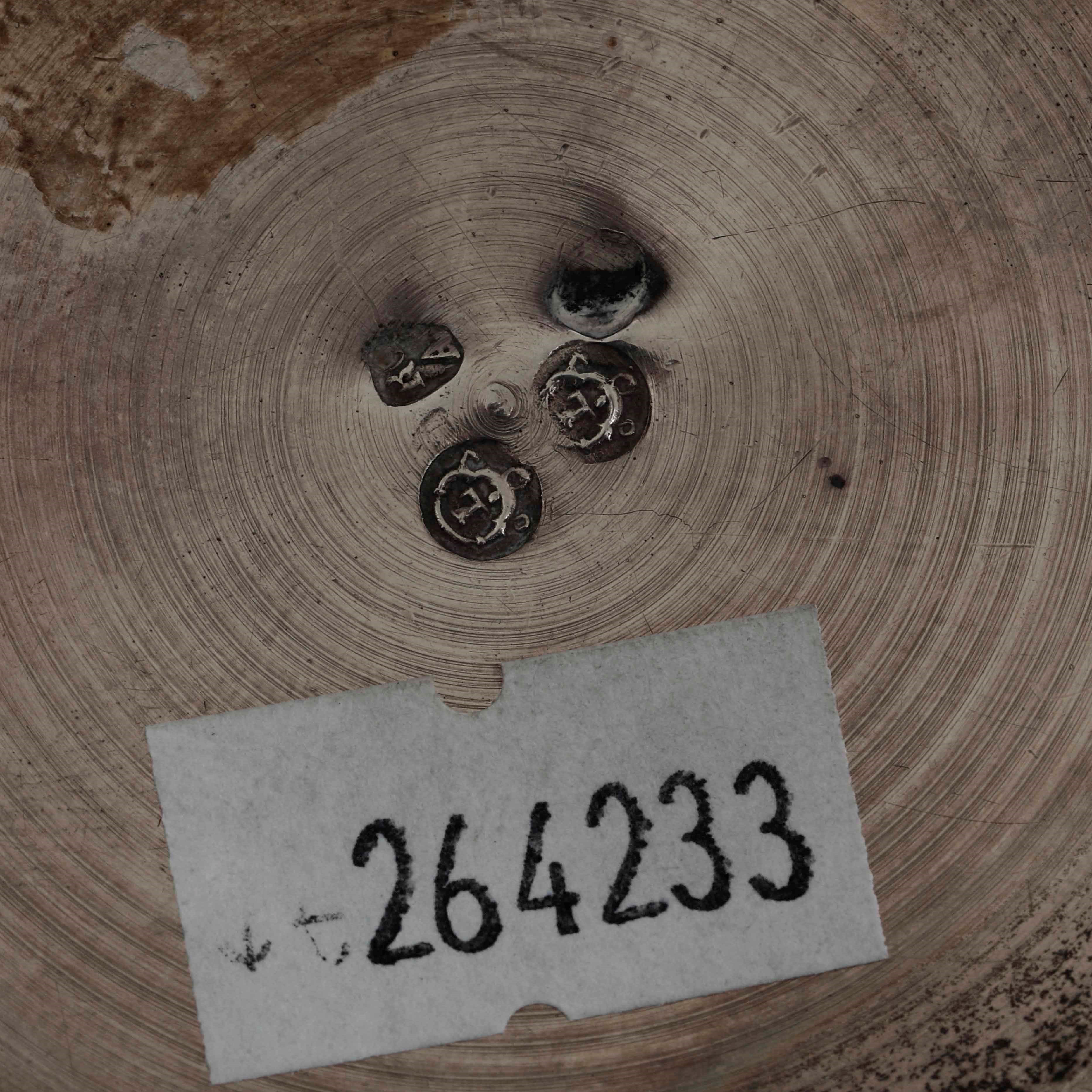 Due coppie di bussolotti da scrittura in argento e un calamaio in metallo e vetro. [..]