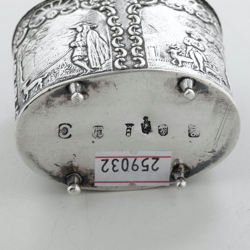 Fiaschetta in argento fuso, sbalzato e cesellato. Manifattura europea del XX sec [..]