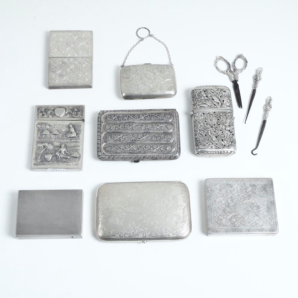 Gruppo di otto portabiglietti in argento. Inghilterra XX secolo