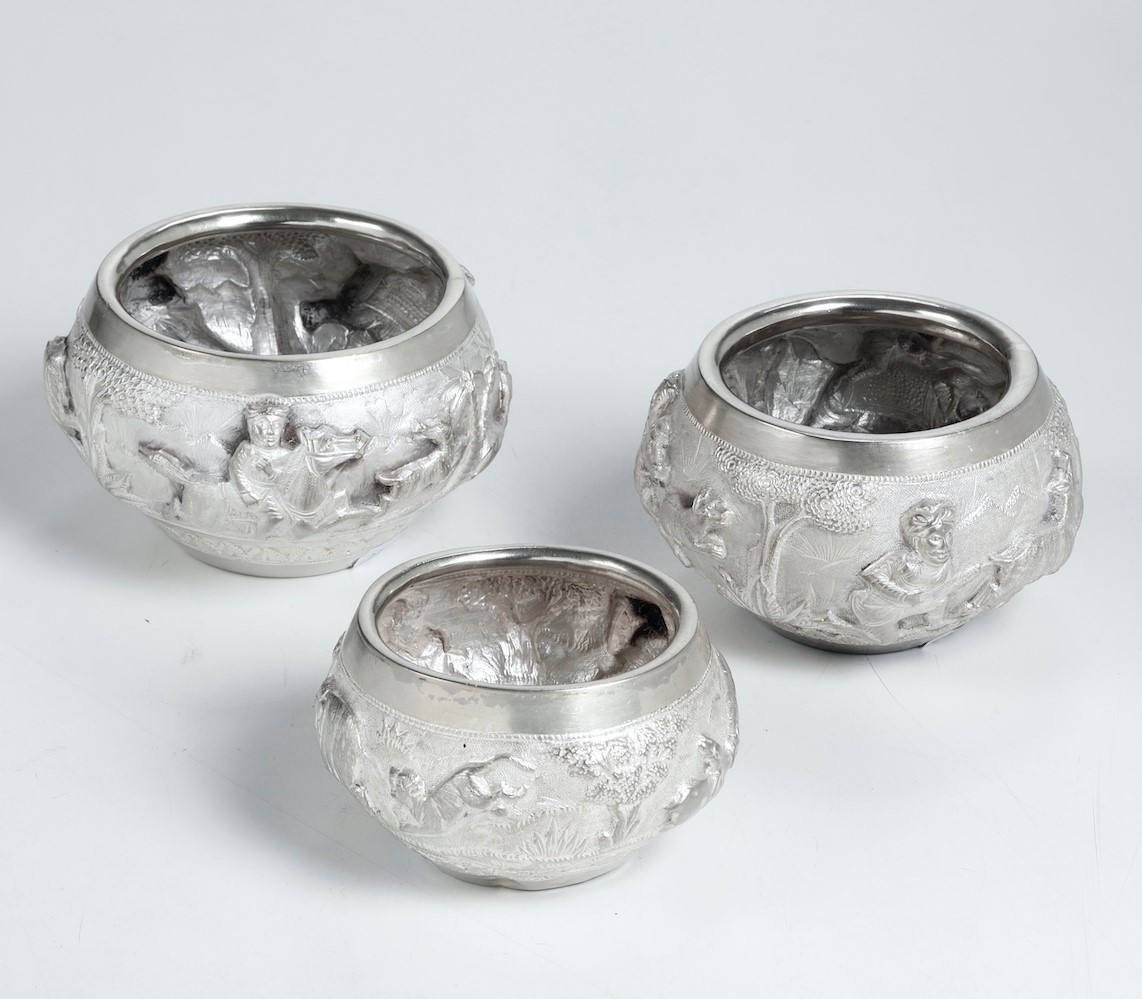 Gruppo di tre boules in argento fuso e sbalzato. Argenteria del XX secolo (apparentemente [..]