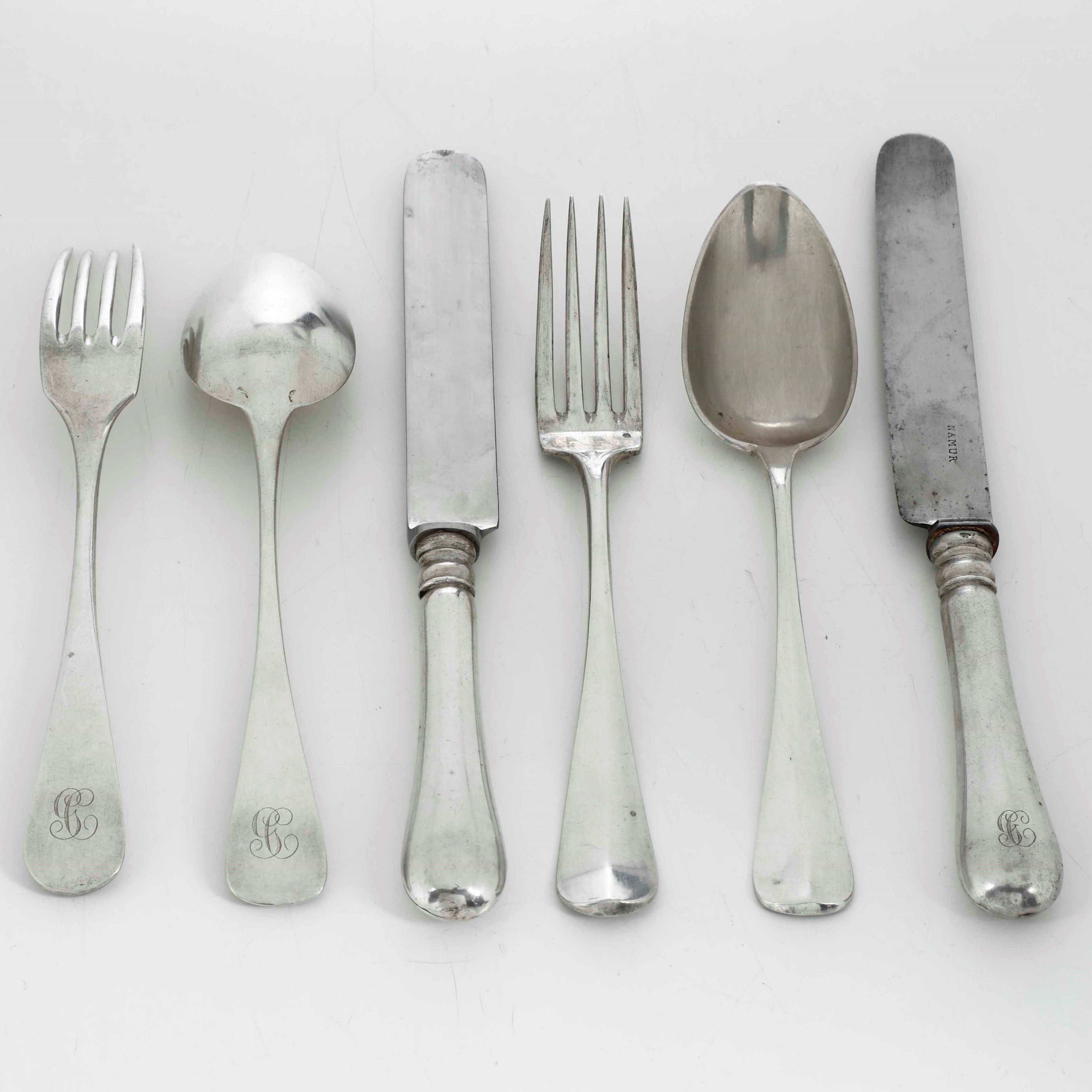 Lotto composto da 26 coltelli, 25 forchette e 11 cucchiai in argento, XX secolo [..]