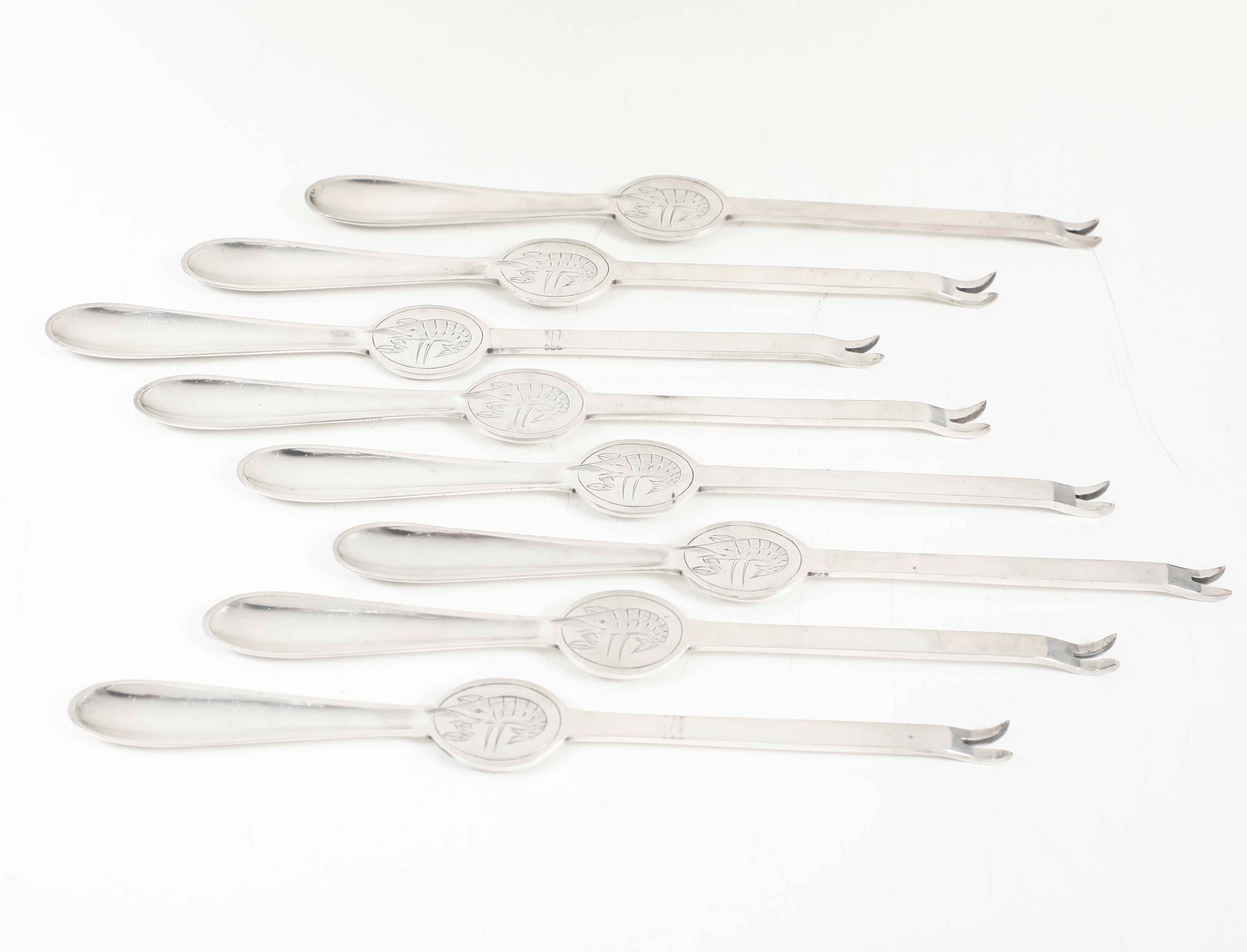 Otto forchettine da aragosta in metallo argentato Mappin & Webb