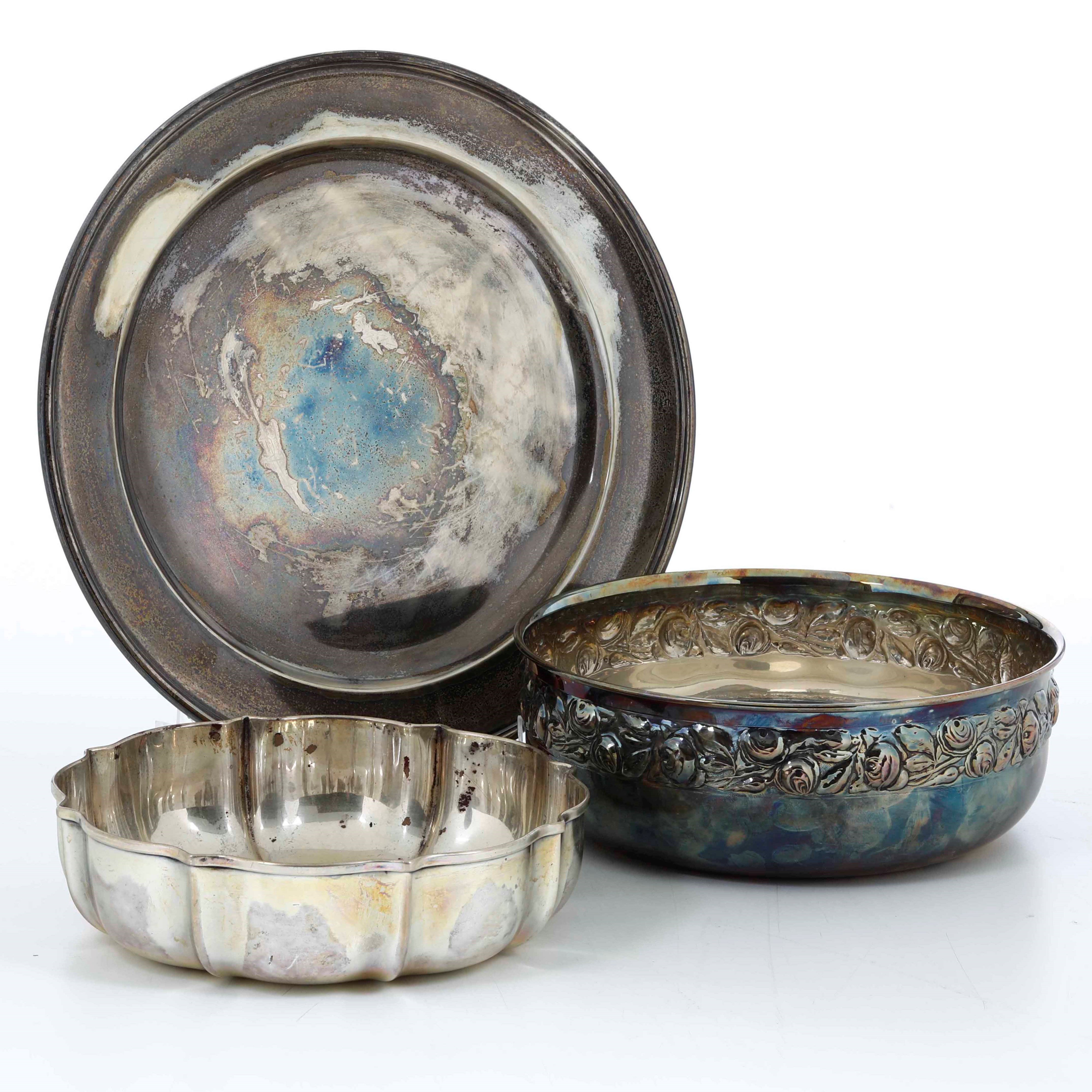 Piatto e due centrotavola in argento fuso. Diverse manifatture italiane del XX s [..]