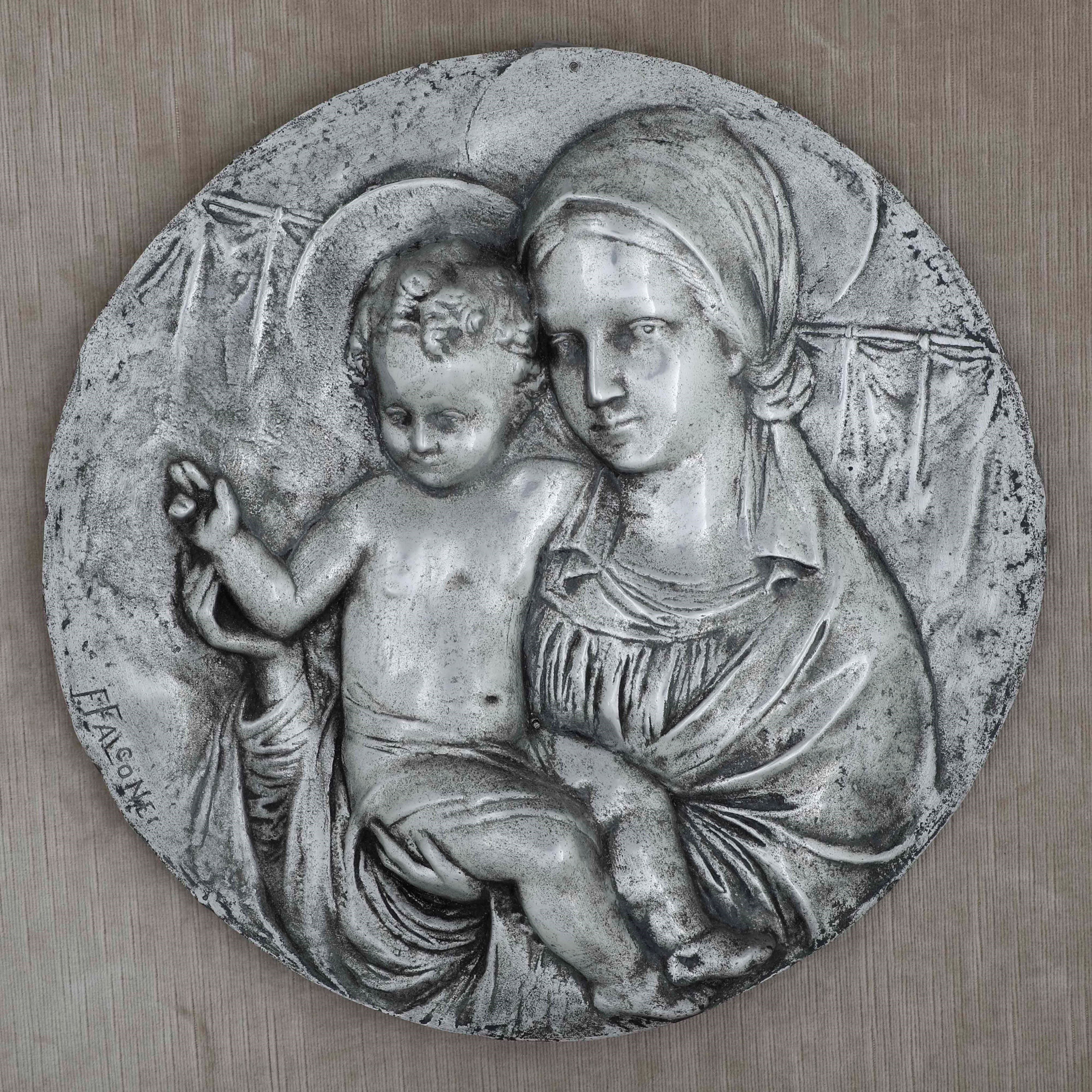 Rilievo raffigurante Madonna con bambino firmato Falcone in metallo argentato