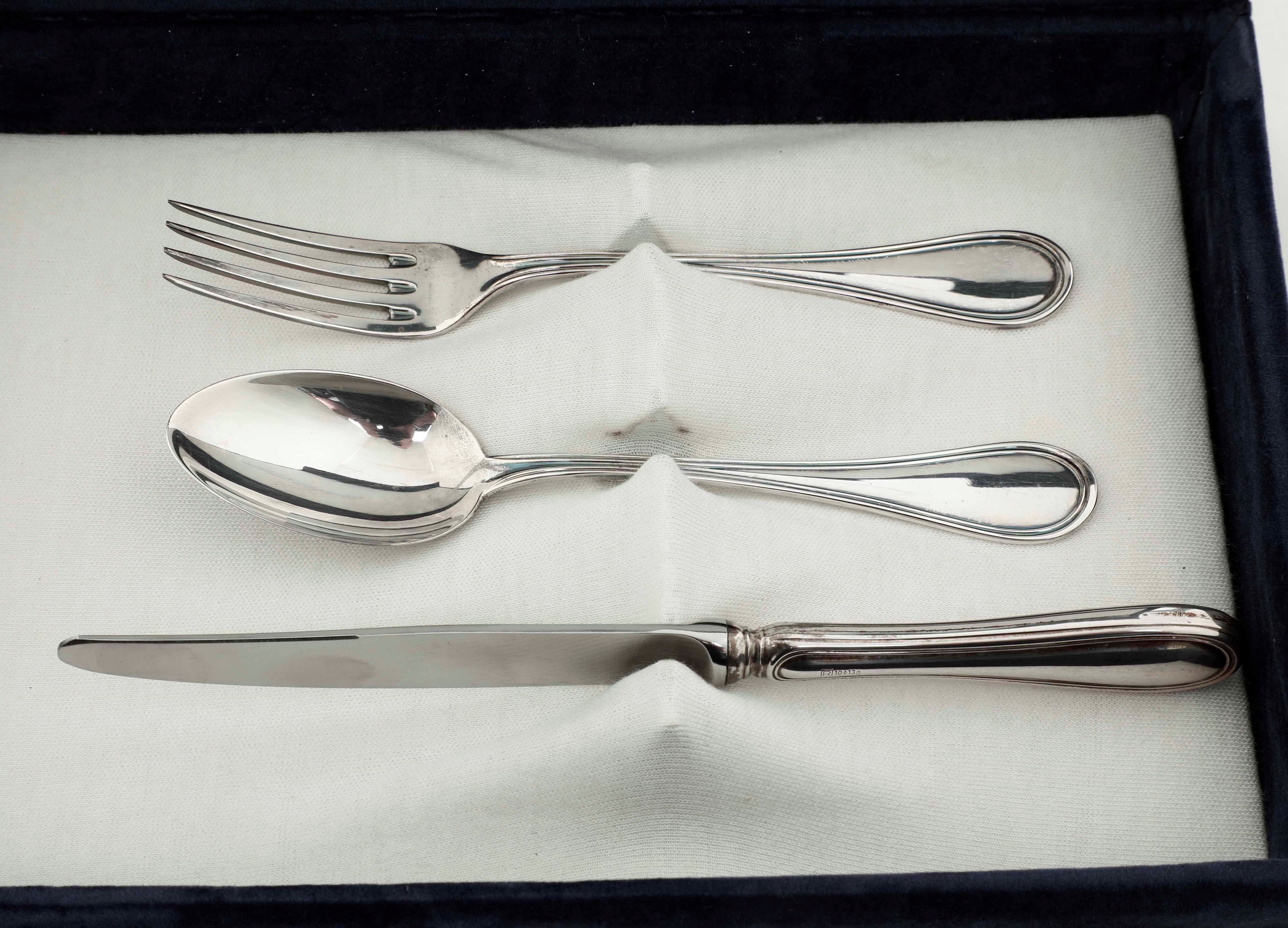 Servizio da bambino in argento composto da forchetta, coltello e cucchiaio. Argenteria [..]
