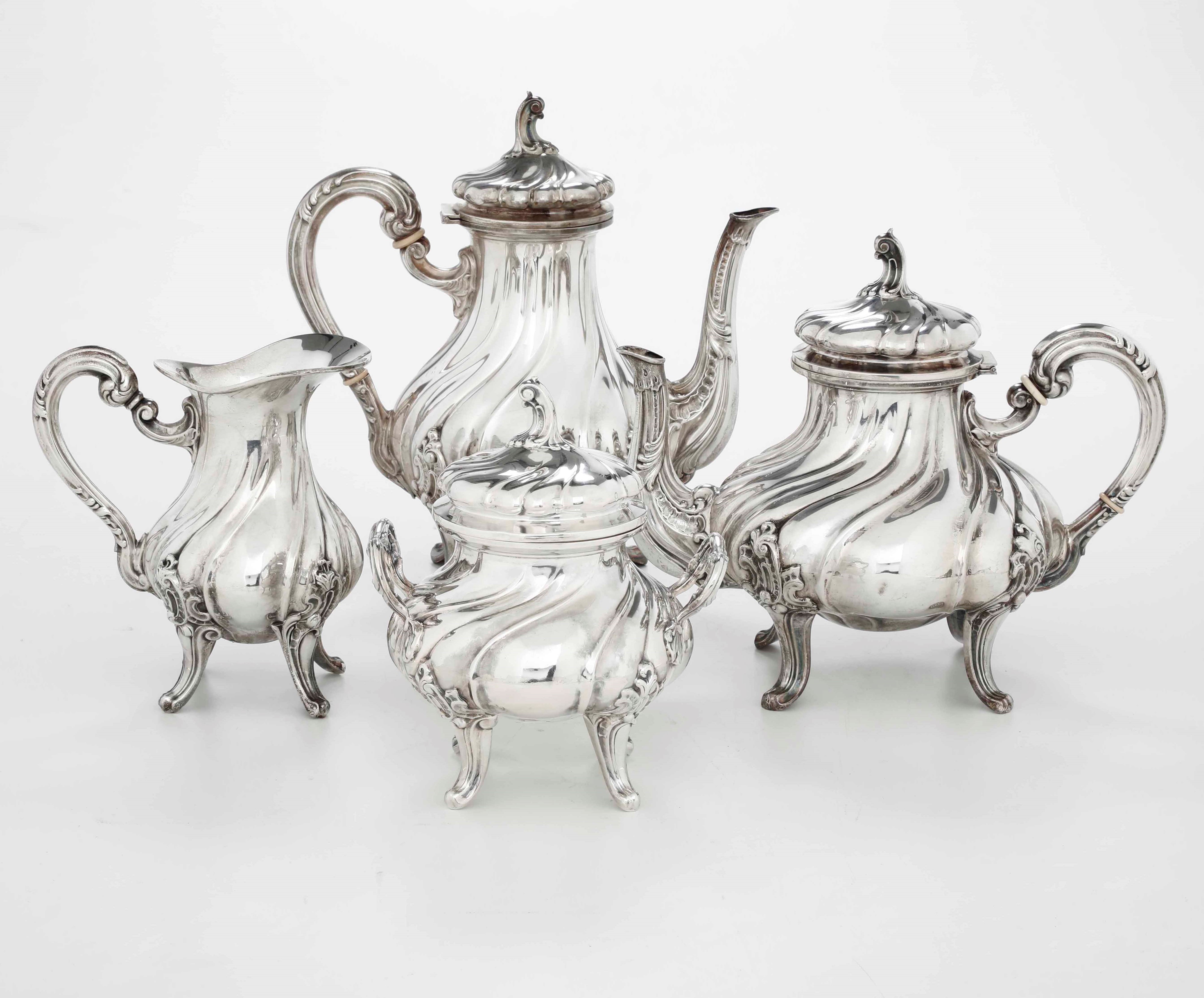 Servizio da tè e caffè in argento fuso e cesellato. Argenteria italiana del XX secolo. [..]