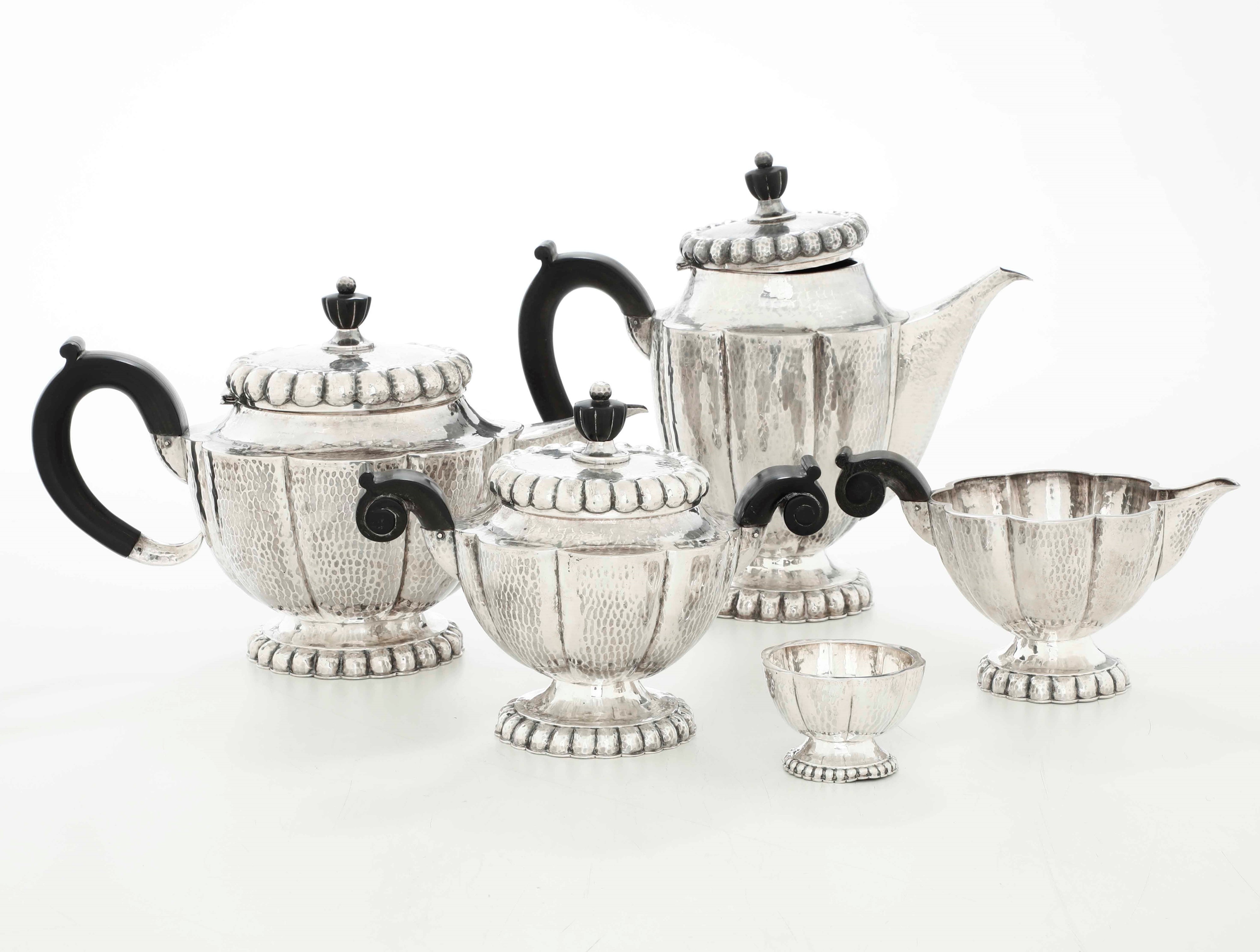 Servizio da tè e caffè in argento fuso e sbalzato. Argenteria europea del XX secolo [..]