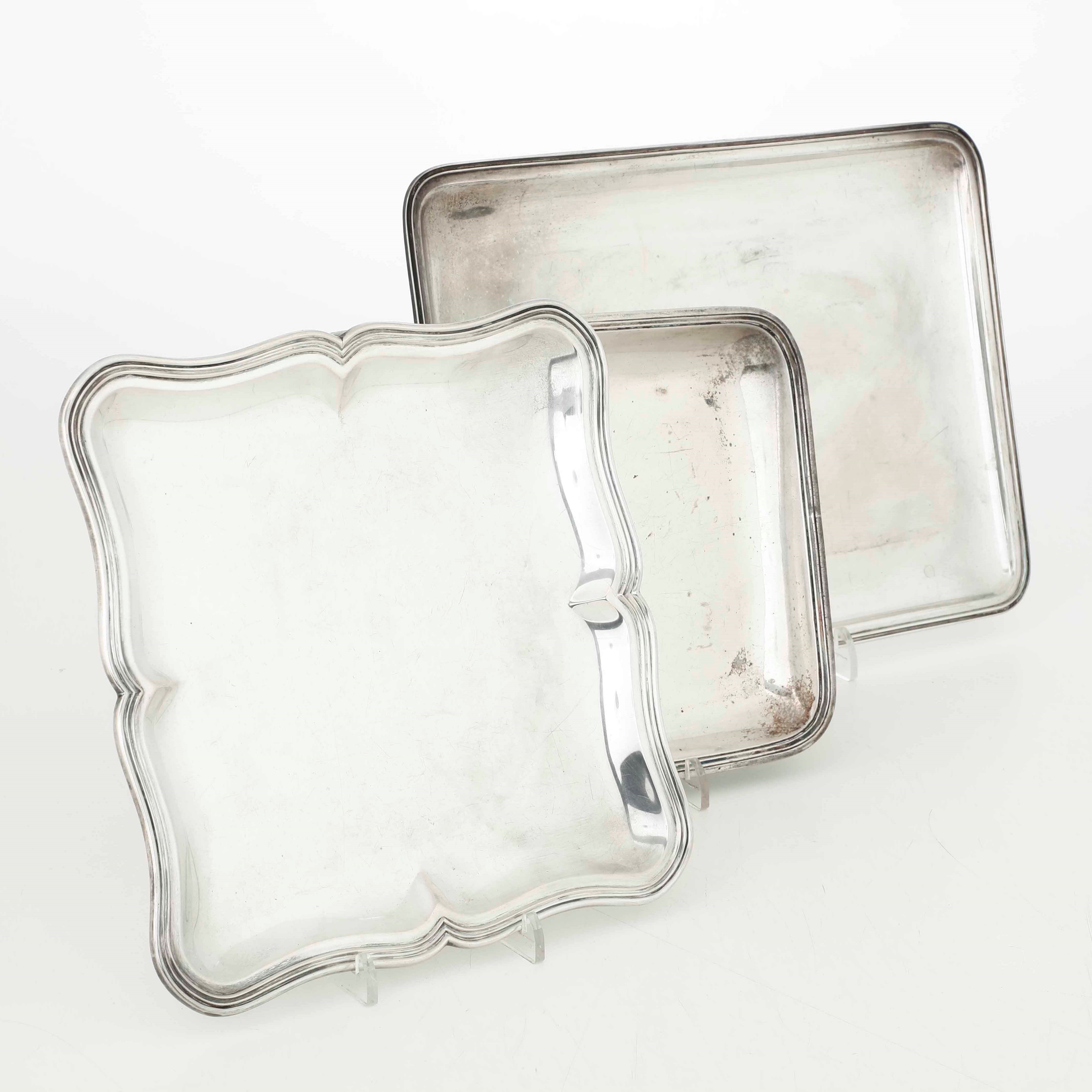 Tre vassoietti rettangolari diversi in argento. Varie manifatture del XX secolo