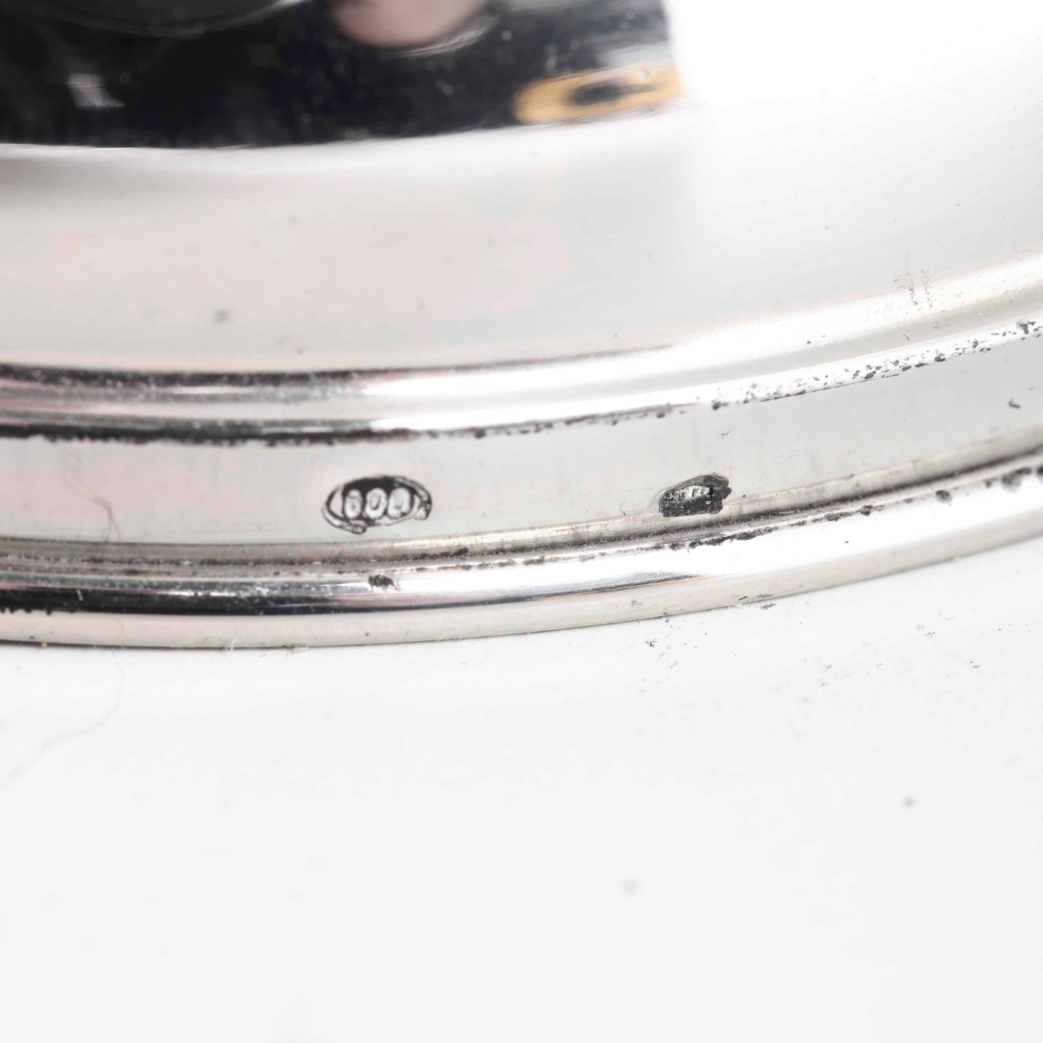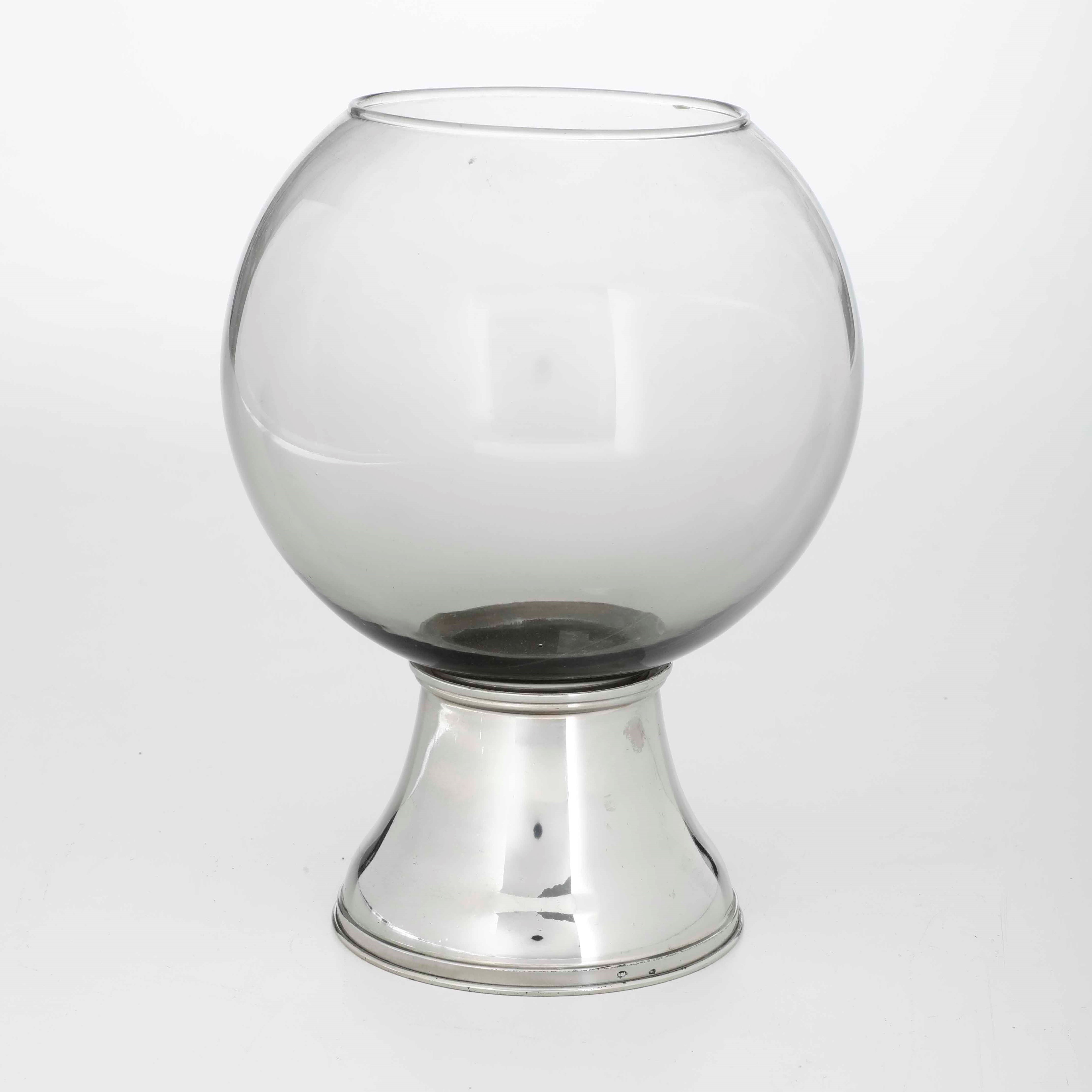 Vaso in vetro poggiante su base in argento, Italia XX secolo