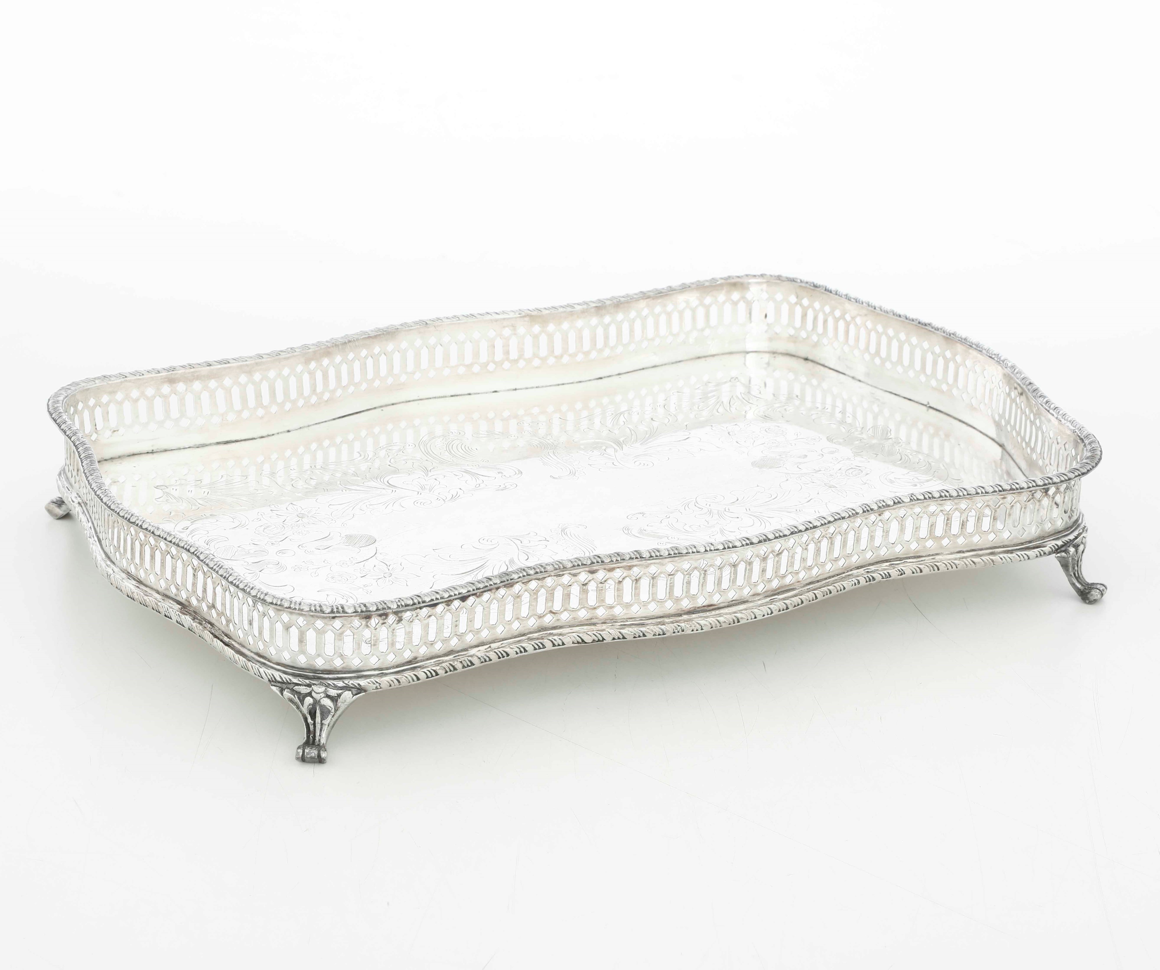 Vassoio in argento fuso, sagomato, traforato e cesellato. Argenteria europea del [..]