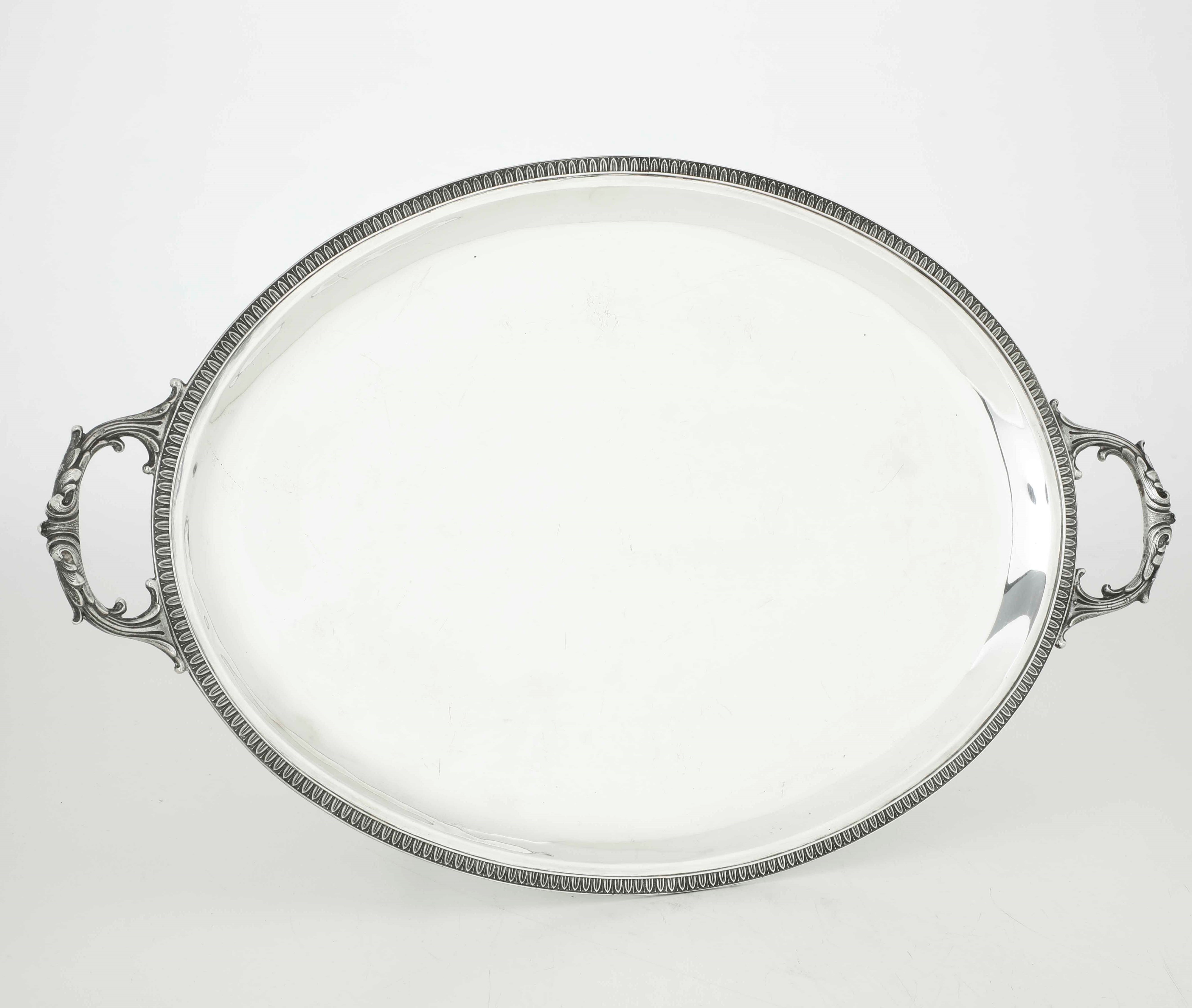 Vassoio ovale biansato. Argento fuso, sbalzato e cesellato. Argenteria italiana [..]