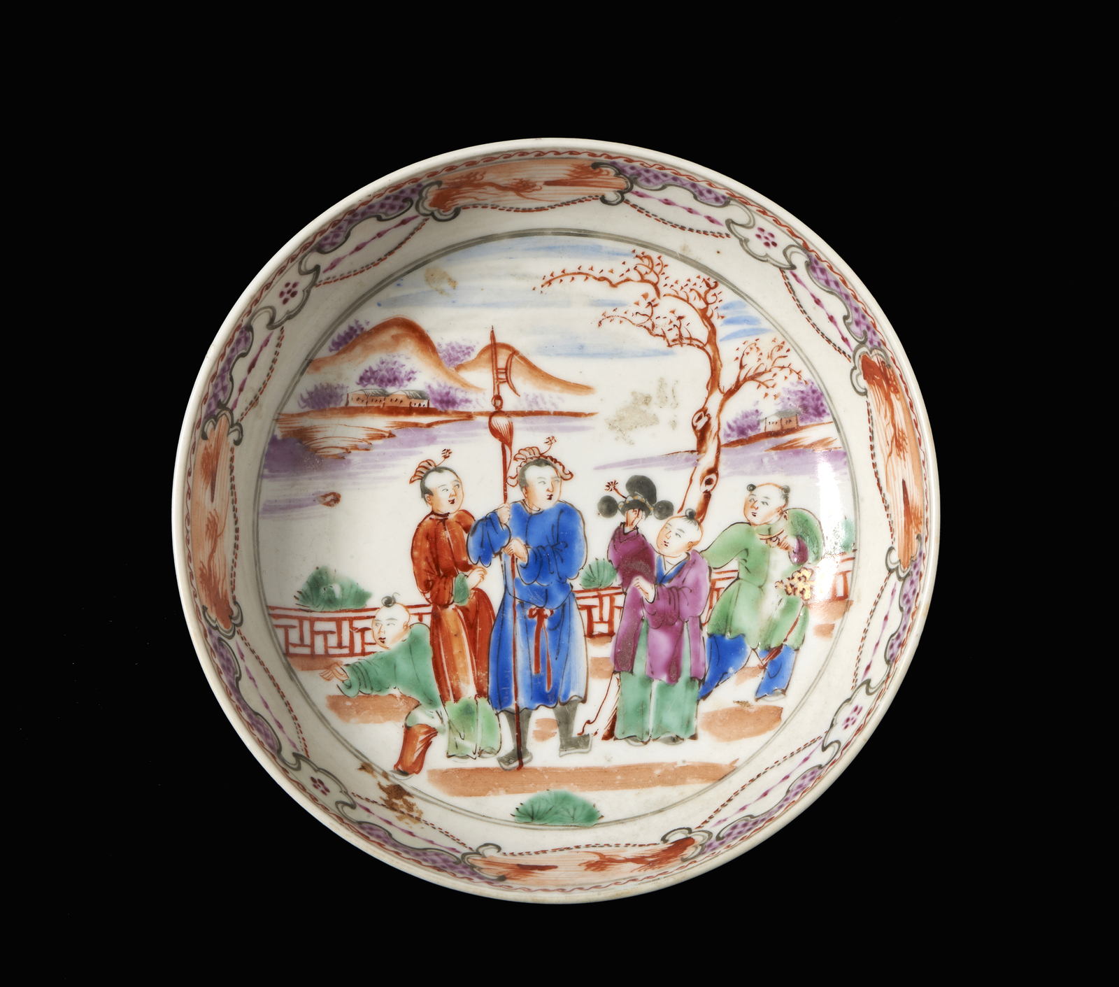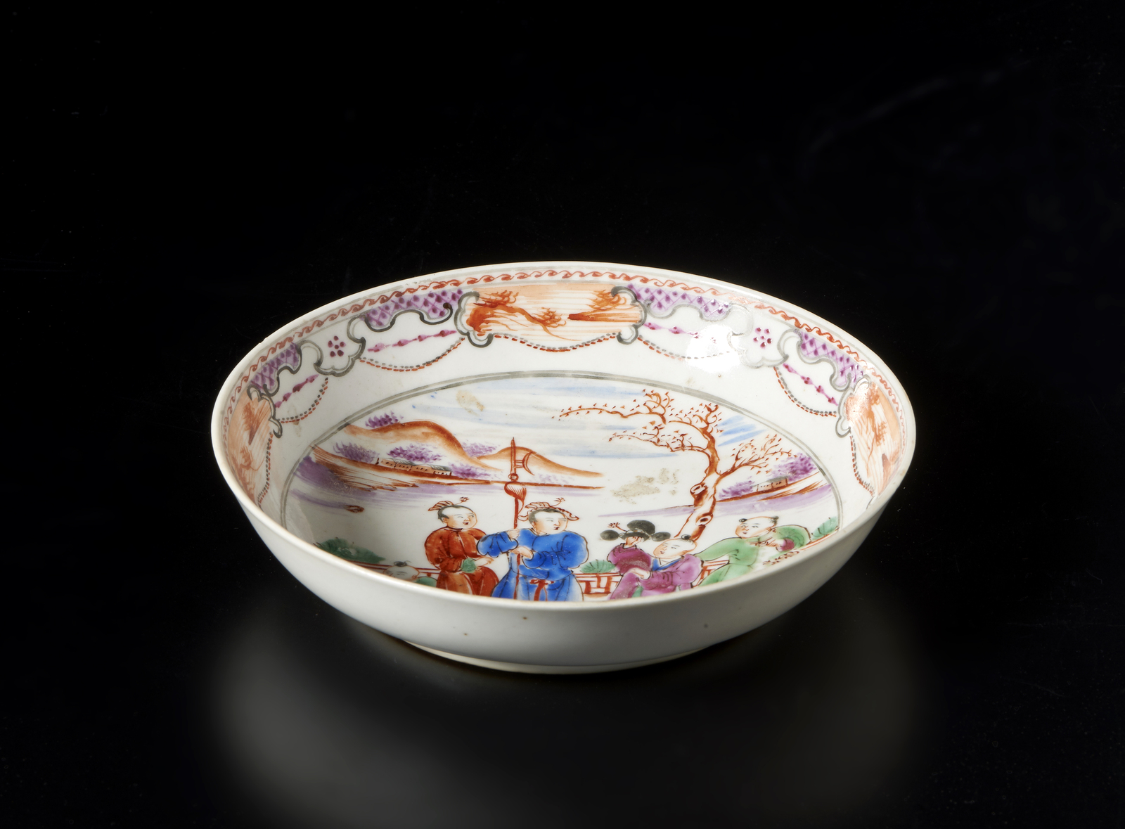 tre esemplari di piatti in porcellana da esportazione di eccellente fattura e grande misura