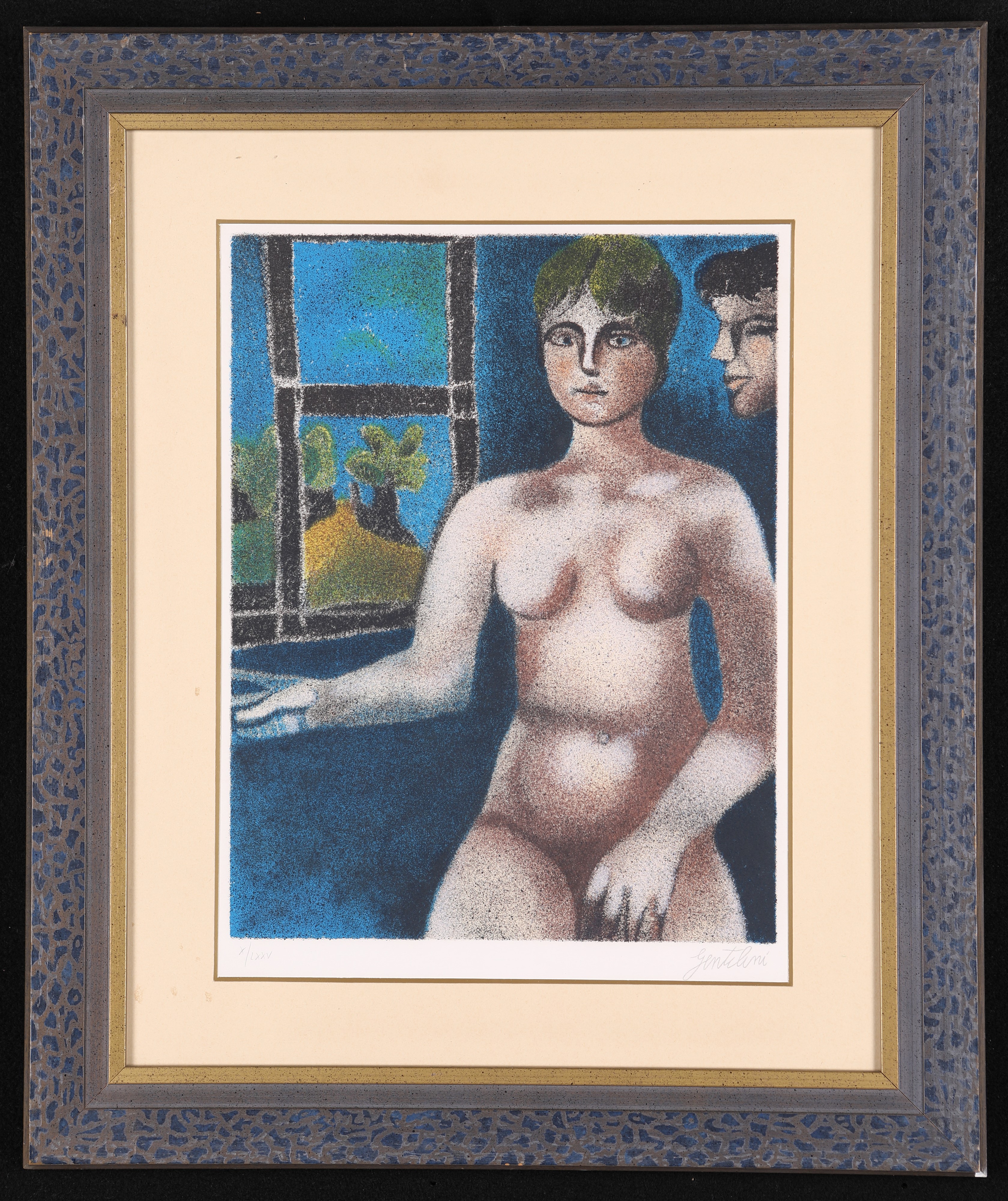 1980 Firma e numerazione Gentilini X/LXXV. Timbro a secco Graphis Arte. Misure in cornice cm 68x57