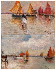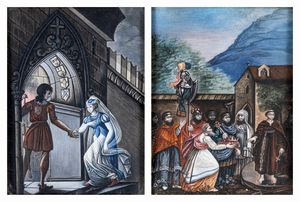 coppia di acquerelli su carta, cm 14x30 - in cornice: cm 33x48 Firmati rispettivamente in basso a destra e a sinistra: [..]