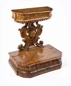 cm 78x70x49 costruito con elementi antichi; sostegno costituito da volute e cartigli centrati da testa di cherubino, [..]