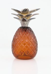 altezza cm 15,5 a forma di ananas, con pigna in vetro color caramello e portacandela posto al centro del cespo [..]
