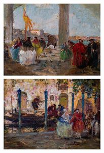 coppia di olii su tela su tela, cm 50 x 36 - in cornice: 75 x 60 Firma non decifrabile in basso a destra