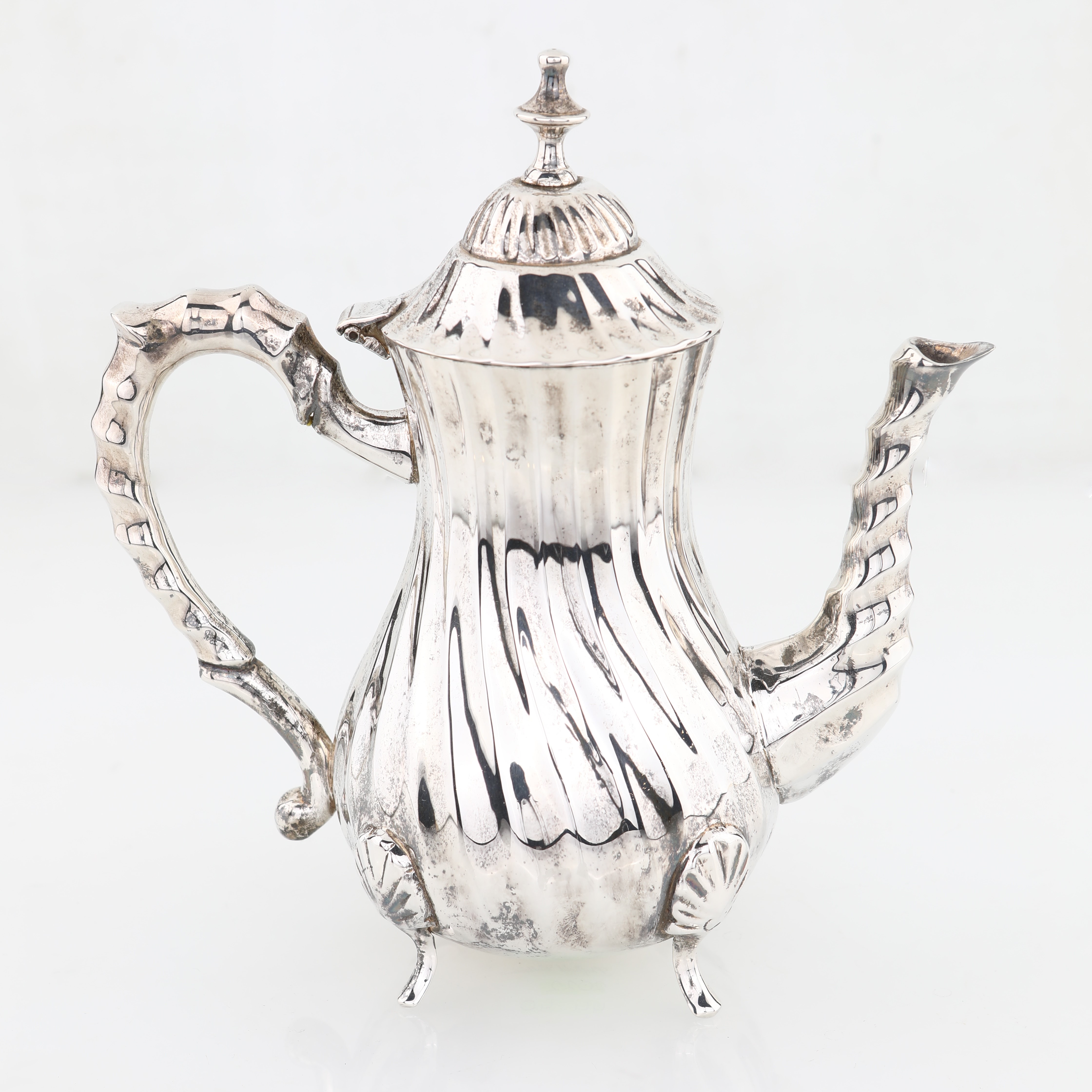 Caffettiera in metallo argentato, British Empire Sheffield Collection