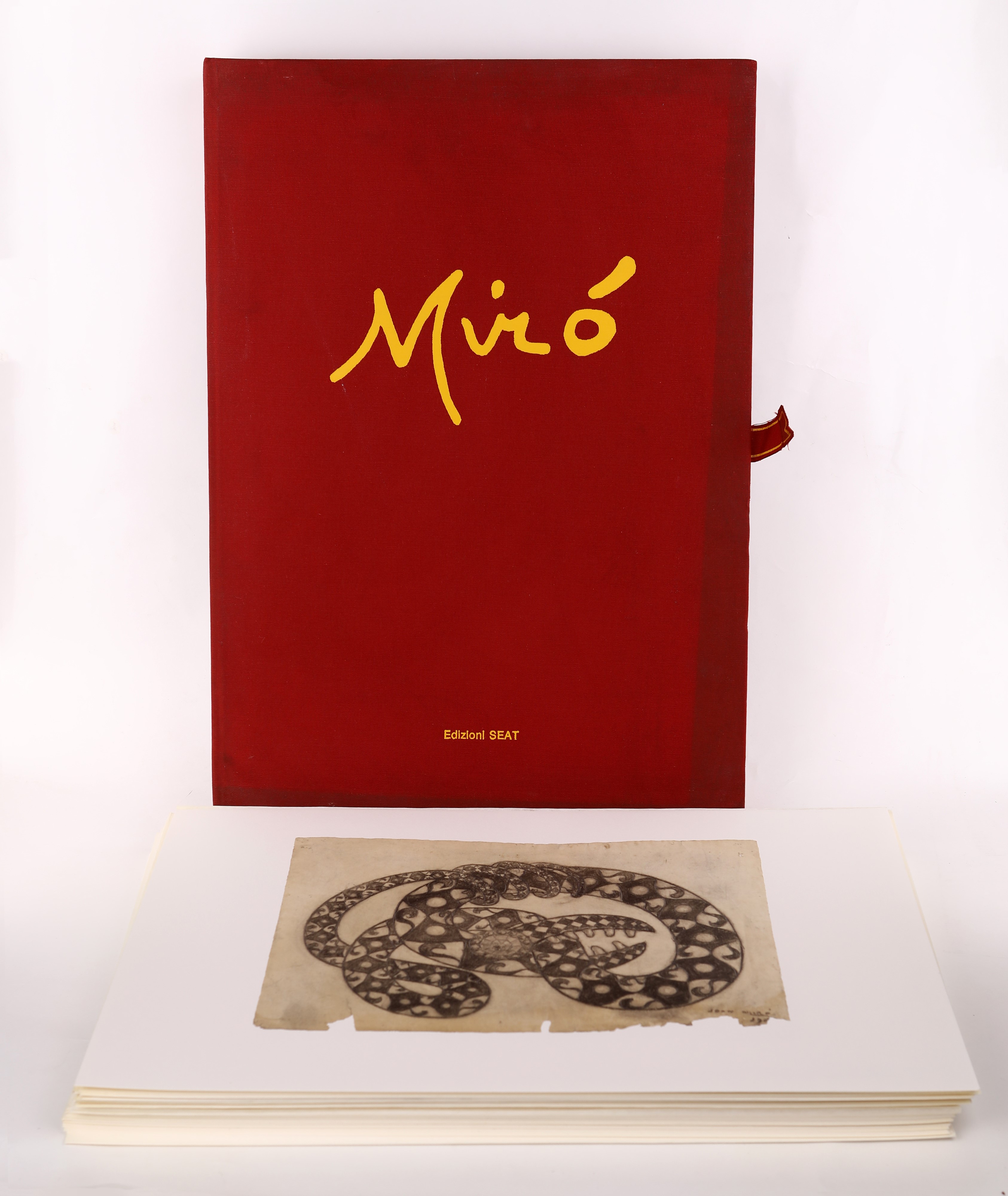 cm 55x40 Edizioni Seat Torino 1987 Libro d'artista edito dalla casa editrice SEAT, a cura di Carmine Benincasa e Rosa Maria Malet. L'opera è stata tirata in una complessiva di 3.000 esemplari. Questo da noi proposto è l'esemplare n. 1640. 21 pagine di testo più indici, entro cartella. All'interno contiene tutte le 50 tavole a colori originali, protette da veline. Carta speciale della cartiera Milani, con cartella rivestita di tela.