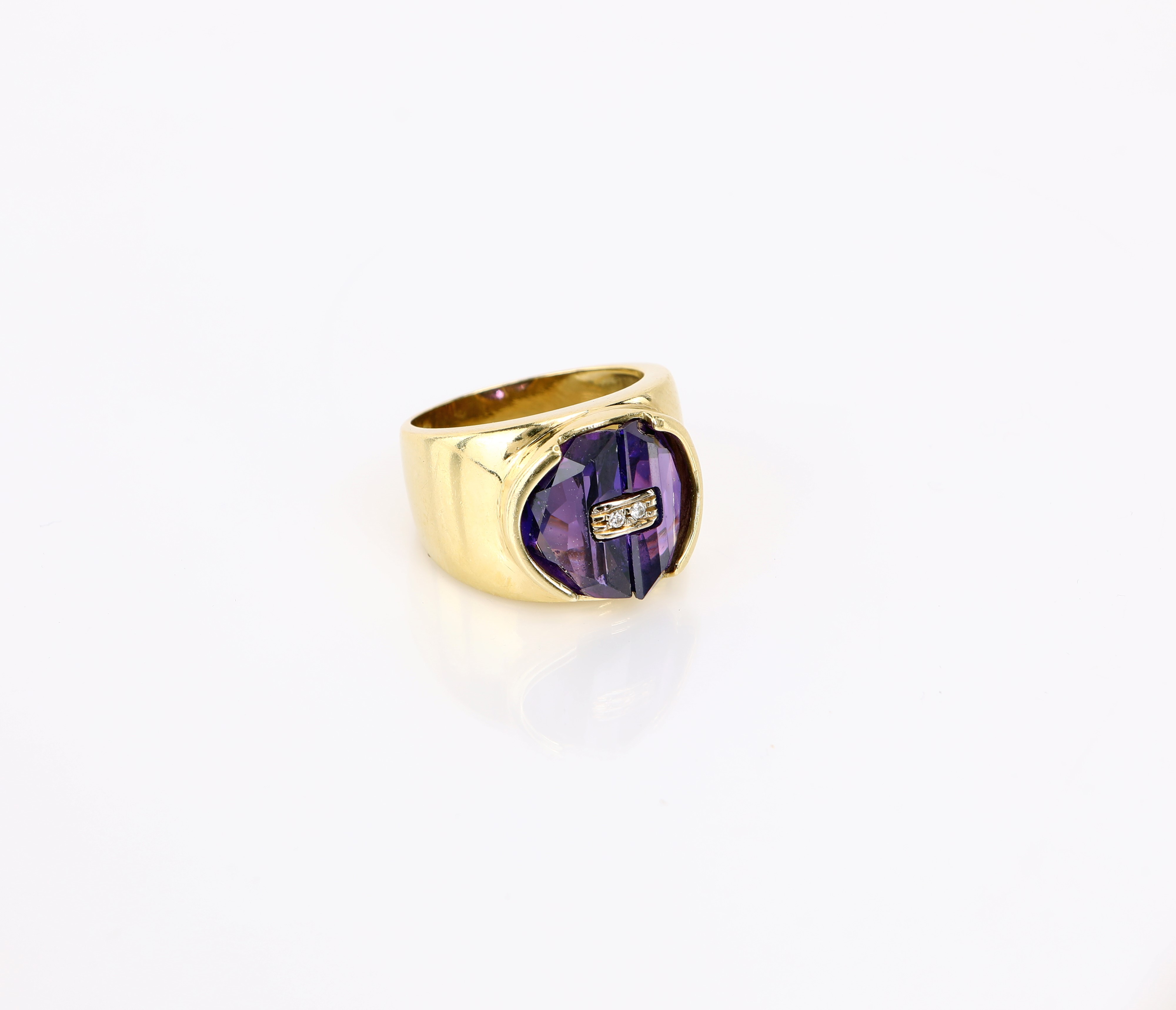 Anello a fascia in oro, ametiste e brillanti