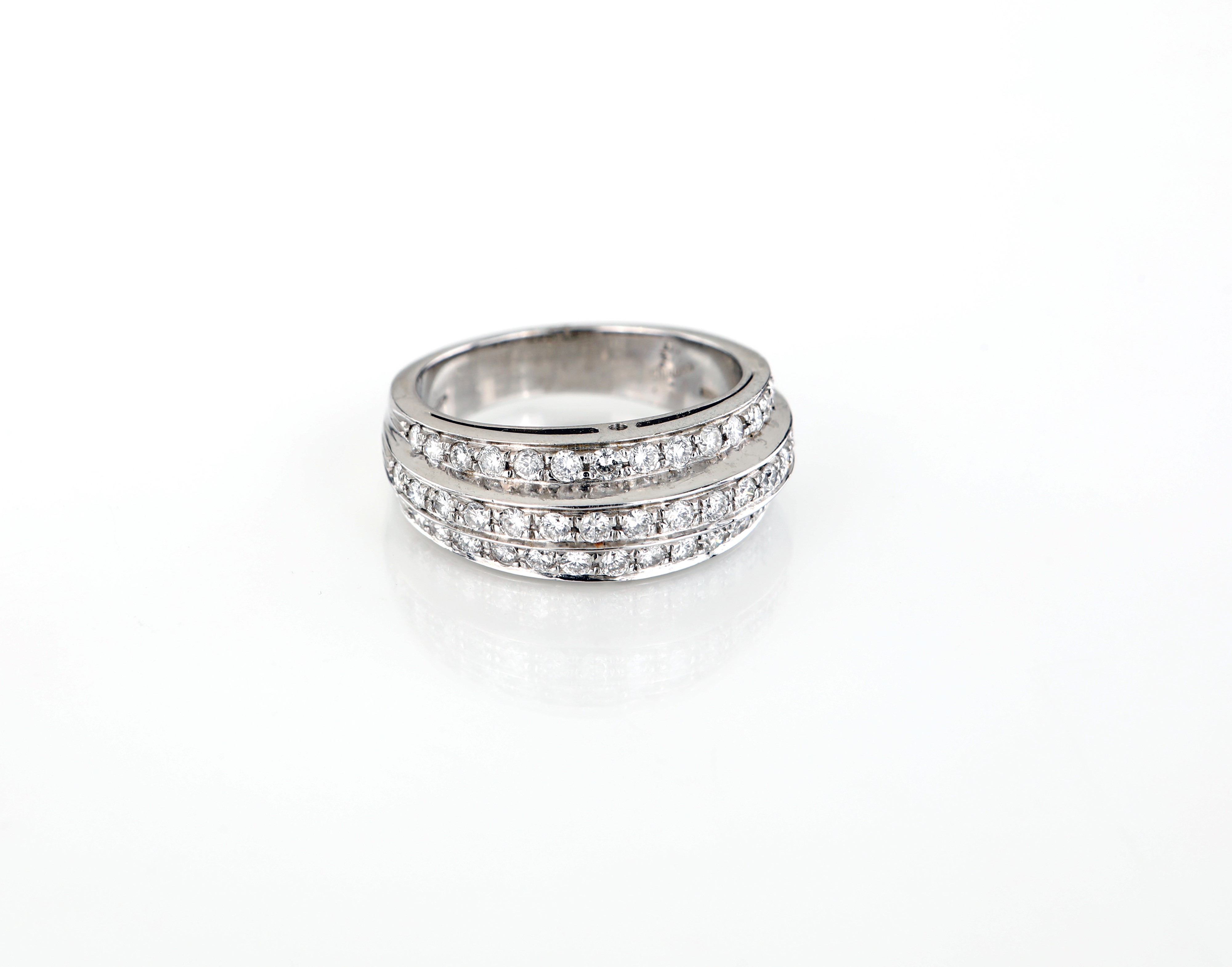 Oro bianco 750/000, diamanti in taglio rotondo brillante ct.0,50 ca. G-H, VS1.Peso gr 6,50.