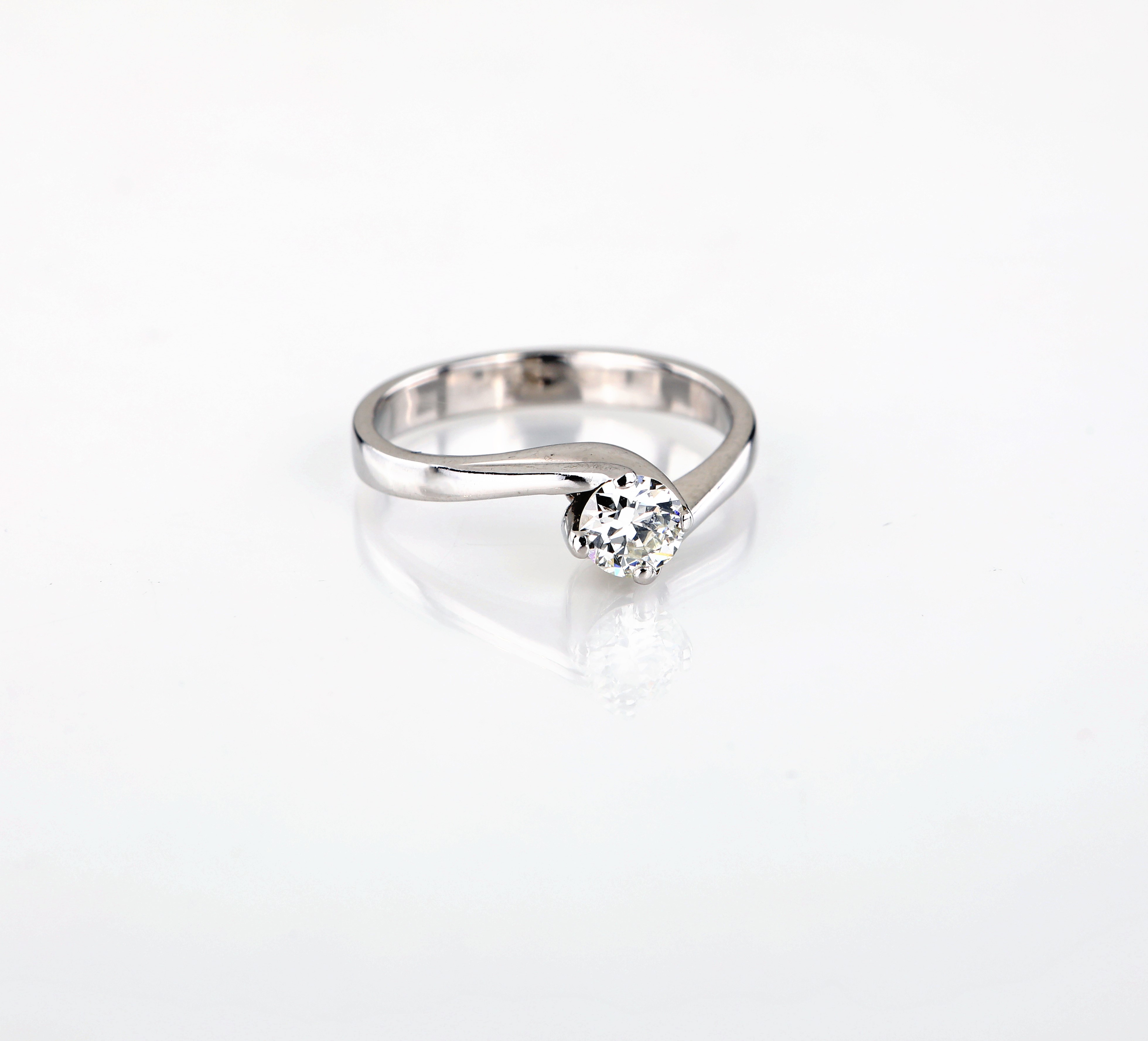 Oro bianco 750/000, diamante naturale centrale in taglio rotondo brillante per ct. 0,50 ca. prob. I-J VS1. Peso gr 4,1