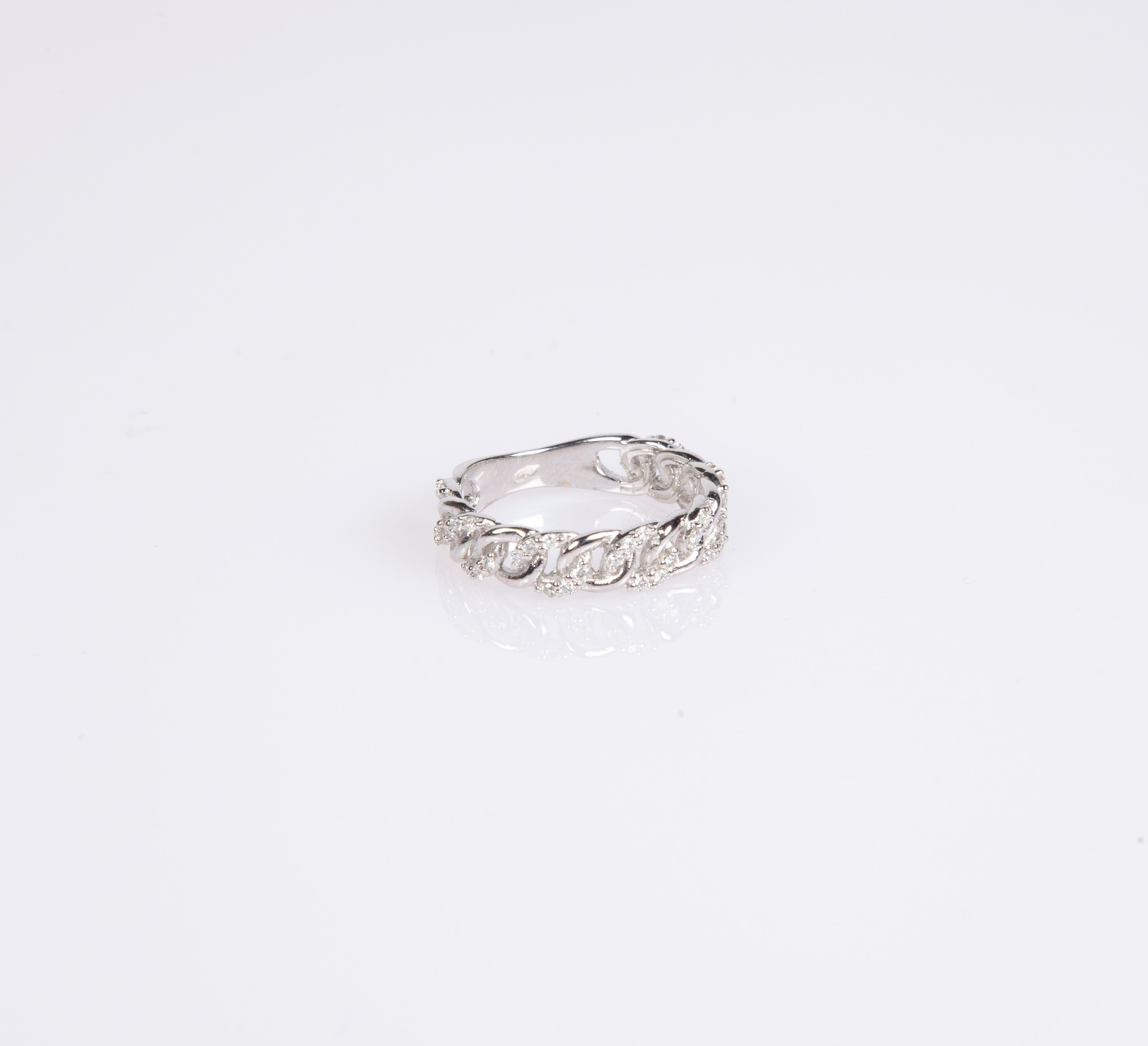 Oro bianco 750/000, diamanti in taglio rotondo brillante ct. 0,40. Peso complessivo gr. 4,4