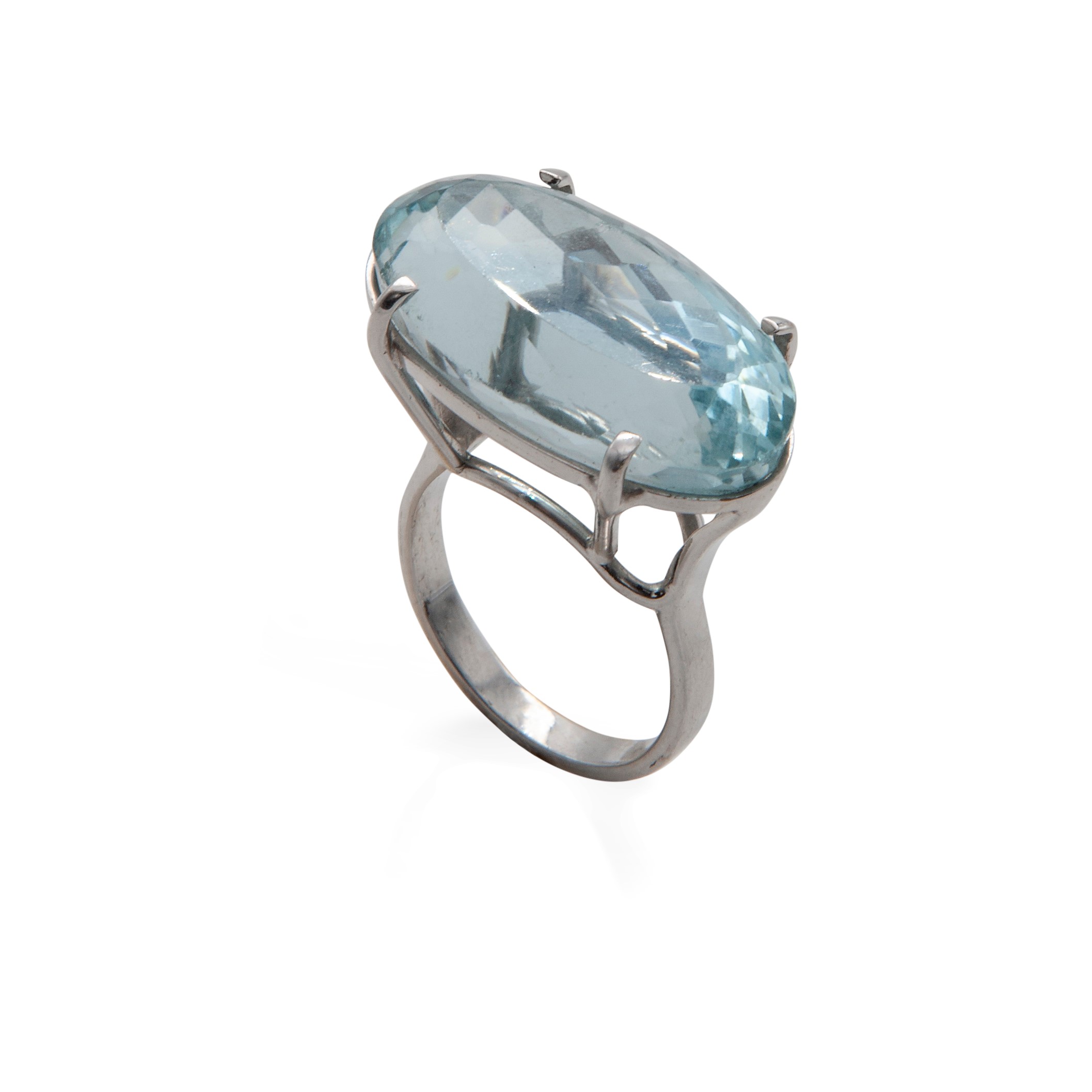 Oro bianco 750/000, topazio taglio ovale ct. 15 ca.