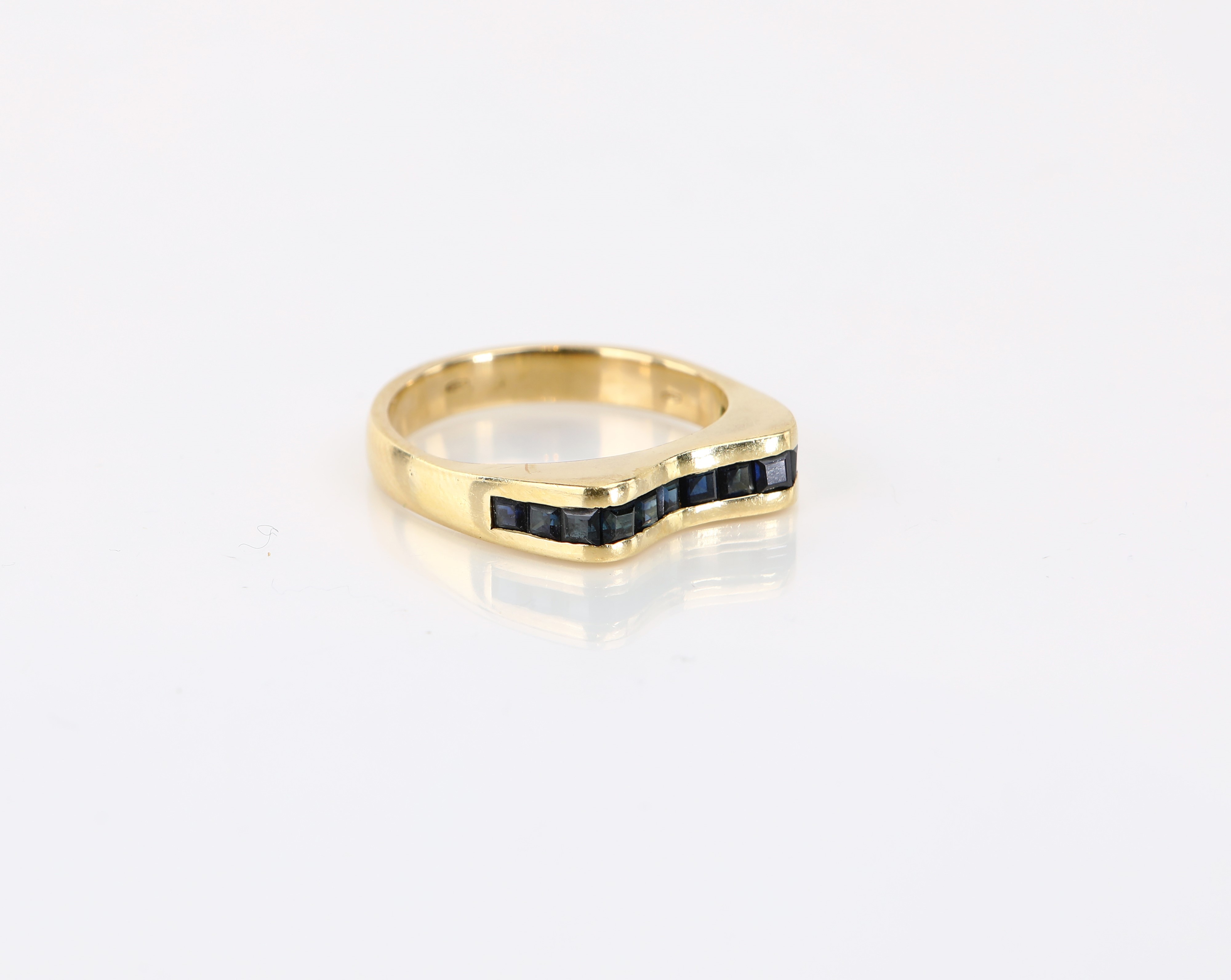 Oro giallo 750/000. Zaffiri taglio carré. Peso complessivo gr. 7,6.