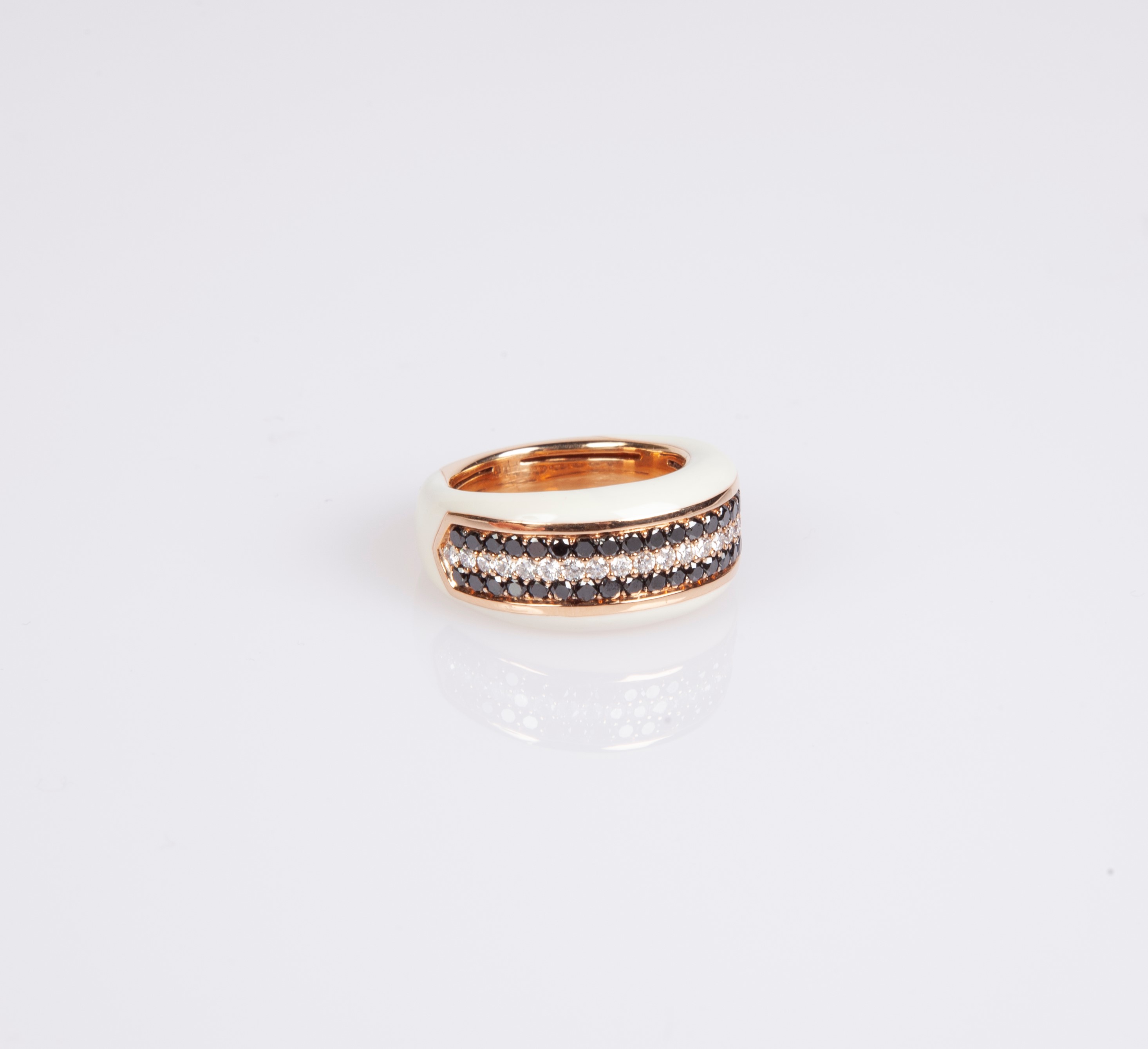 Oro rosa 750/000, diamanti taglio rotondo brillante ct. 0,70 ca, diamanti neri ct. 1 ca.