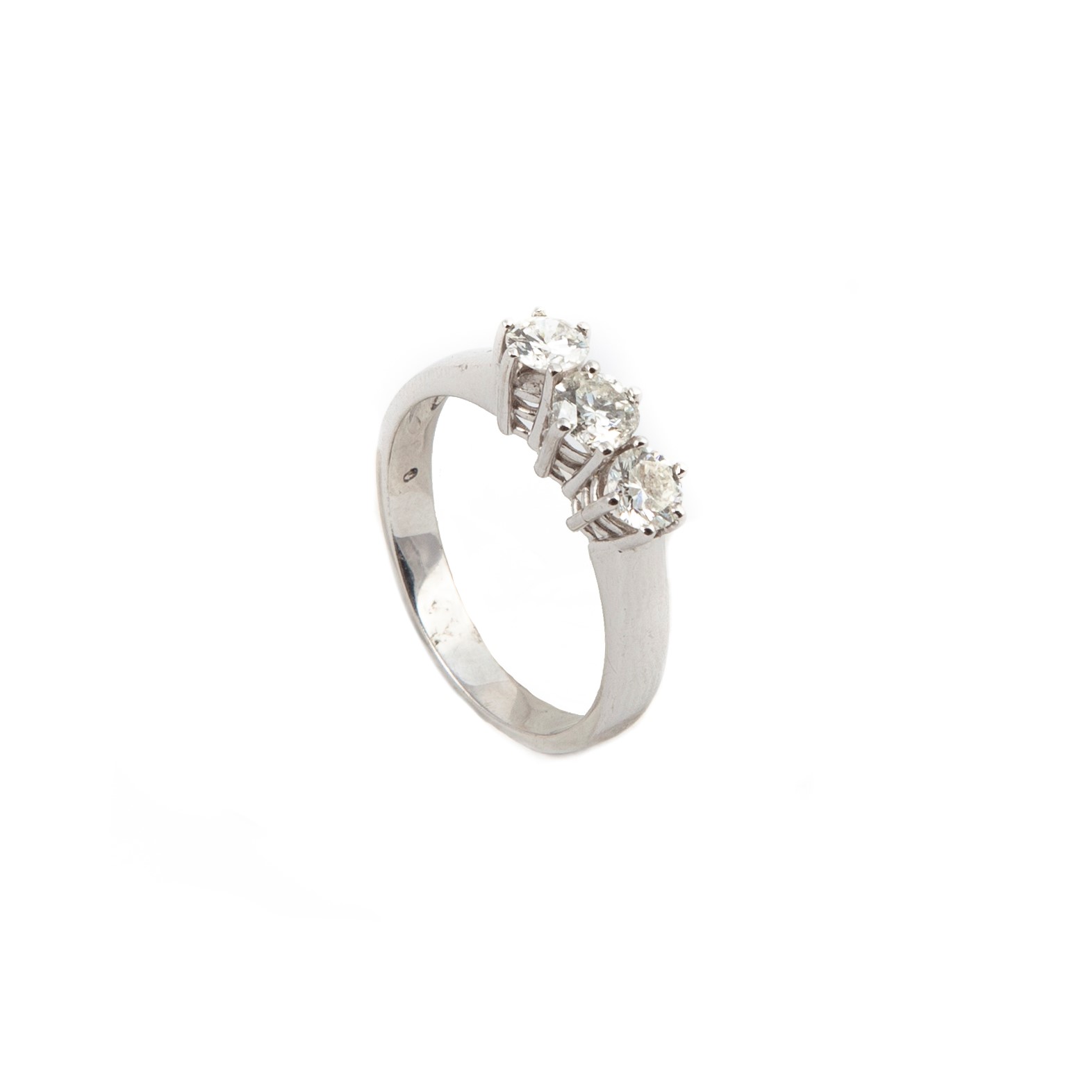 Oro bianco 750/000, diamanti taglio rotondo brillante ct 0,65 ca; prob. H-SI. Peso complessivo gr. 3,70.