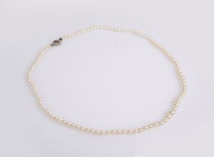 Lunghezza cm 70 Oro bianco 750/000, perle da coltivazione in acqua marina da mm.5 a mm. 8.