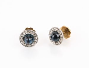 diametro cm 1 Oro giallo 750/000 e platino. Zaffiro taglio pan di zucchero. Peso complessivo gr. 2.