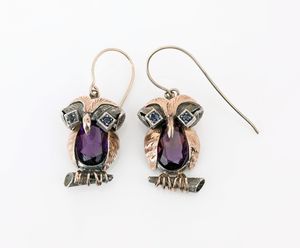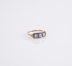 Oro basso titolo, argento diamanti. Peso complessivo gr. 6,50.