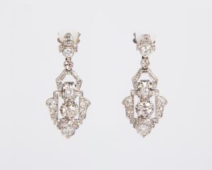 Lunghezza cm 3,5 Oro bianco 750/000, diamanti in taglio vecchia europa ct. 0,70 ca. Corredati di custodia orig [..]