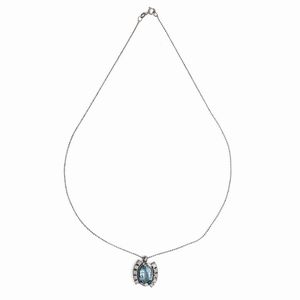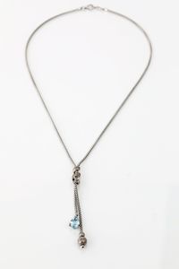 Lunghezza cm 42 Oro bianco 750/000. Topazio azzurro in taglio goccia . Peso complessivo gr. 8,50.