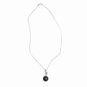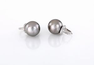 h. cm 2 Oro bianco 750/000, diamanti in taglio rotondo brillante ct.0,15 ca. perle Tahiti diametro mm. 13.Peso [..]