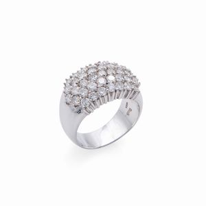 Misura 14 Oro bianco 750/000. Brillanti ct. 2,10 circa, prob  H, VS/SI. Peso complessivo gr. 10,6.