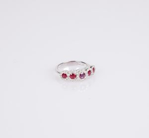 Misura 16 Oro bianco 750/000, rubini in taglio rotondo e brillanti ct. 0,50 ca.Peso complessivo gr 4,4