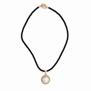 Lunghezza cm 52 Oro giallo e bianco 750/000, brillanti ct. 0,30 ca. Peso complessivo gr 15,8.