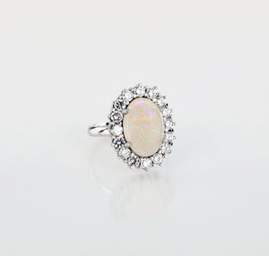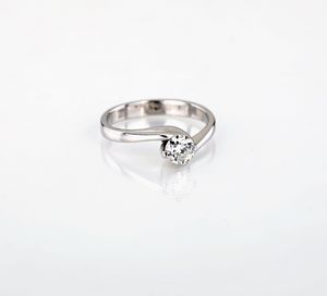 Oro bianco 750/000,Diamanti in taglio rotondo brillante ct. 0,60 ca. Peso complessivo gr. 3,20