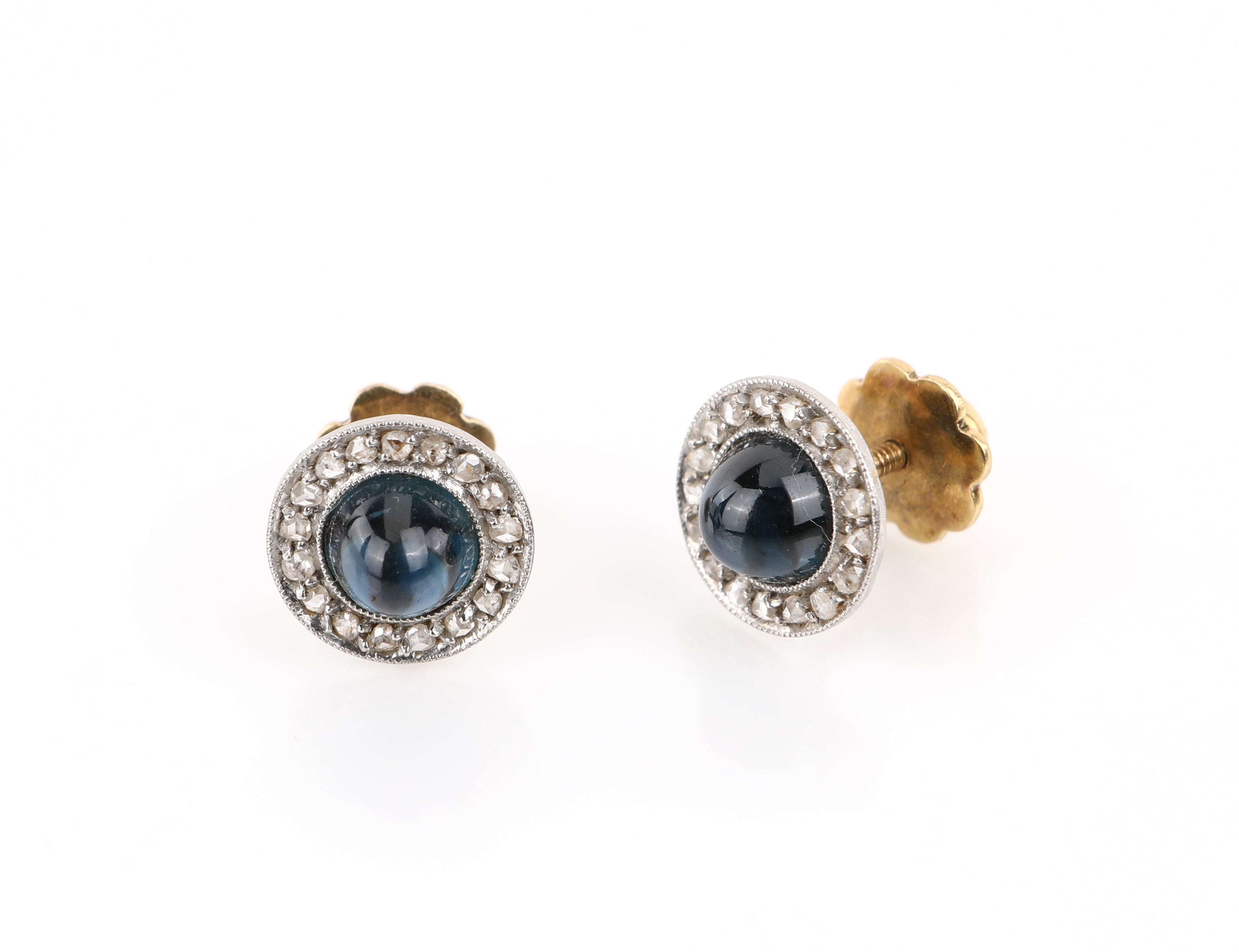 Orecchini decò a lobo in oro, platino, zaffiro e diamanti