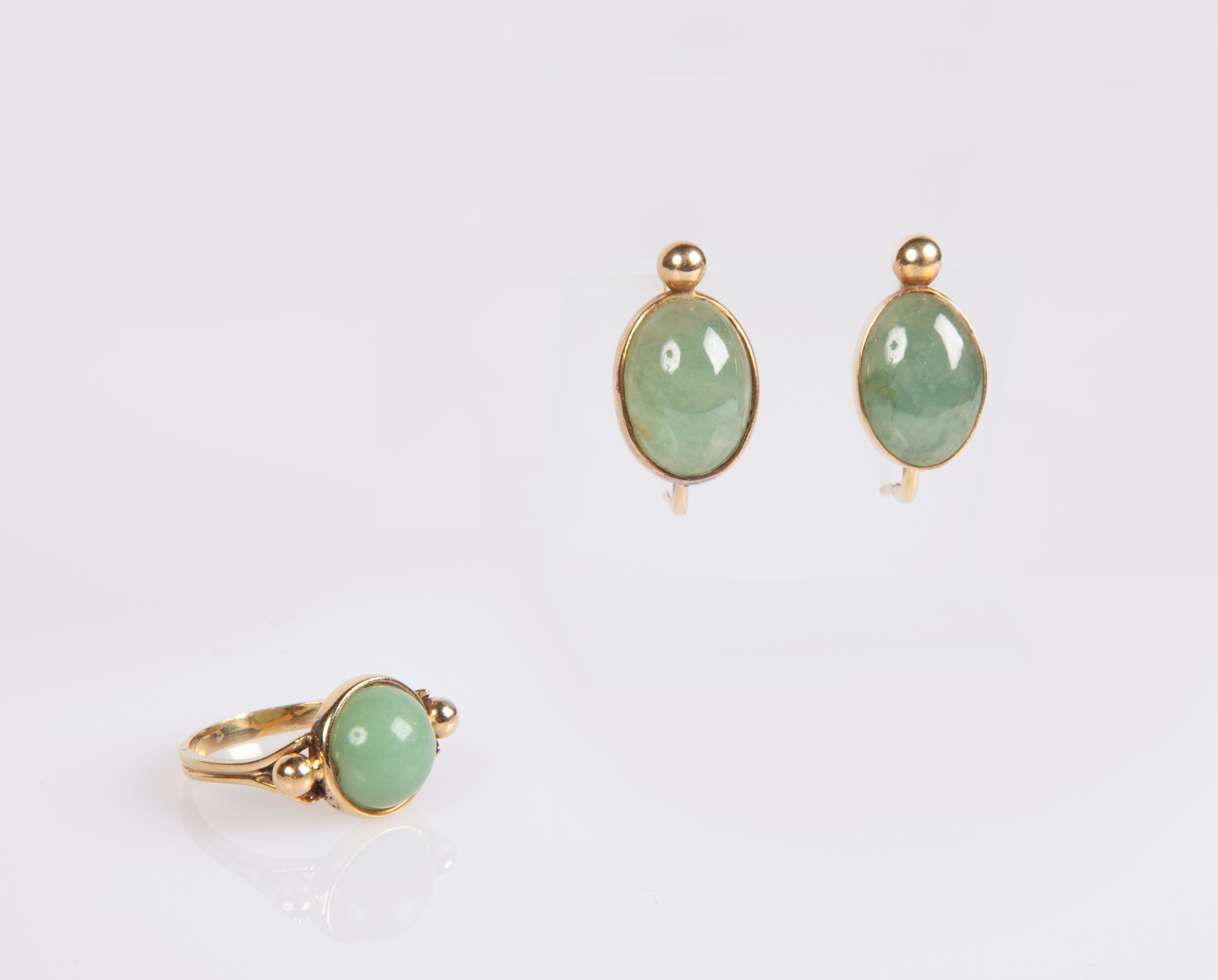 Oro giallo 750/000, giade in taglio cabochon. Peso complessivo gr. 15,80
