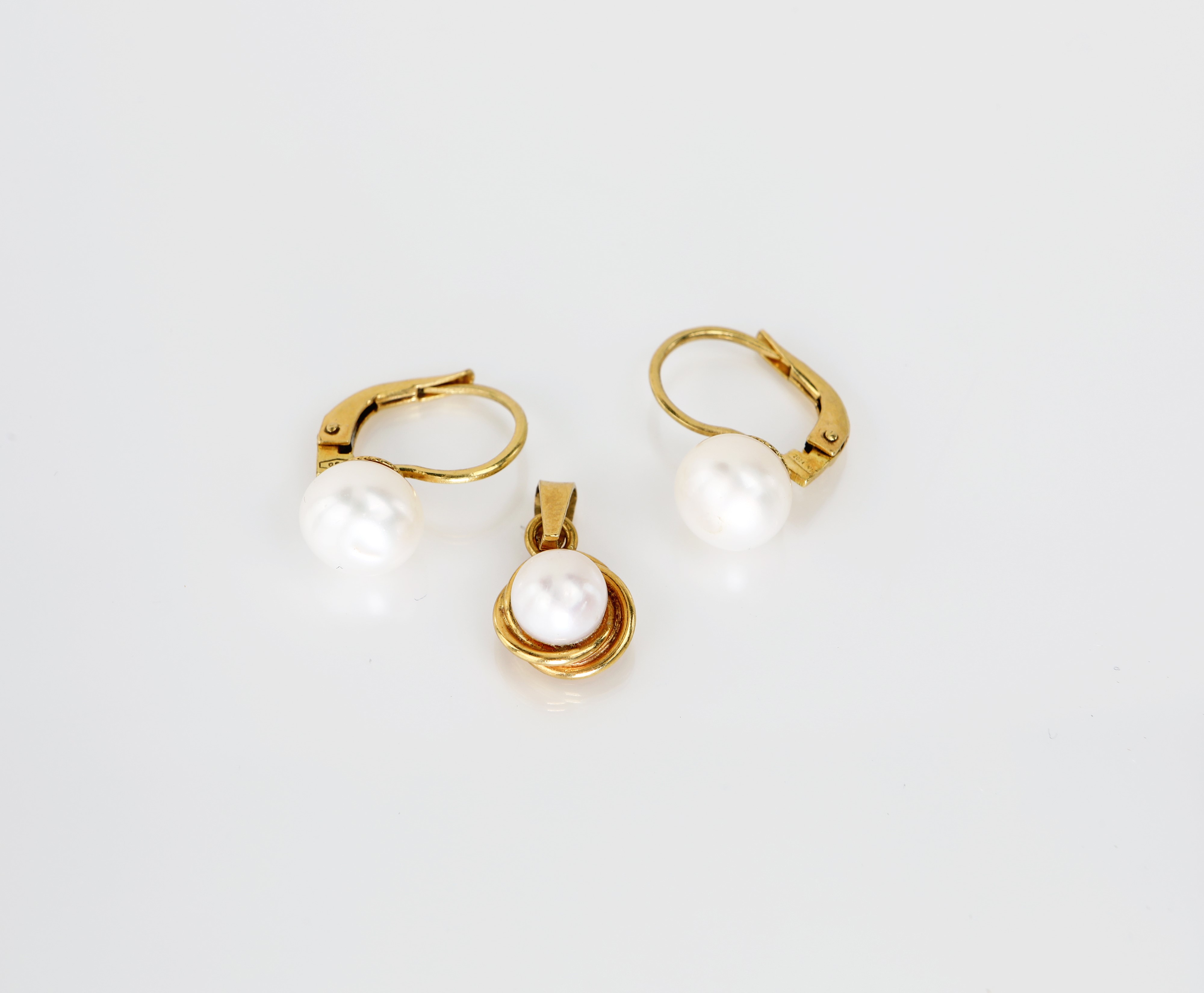 Oro giallo 750/000, perle freshwater. Peso complessivo gr. 4,70.