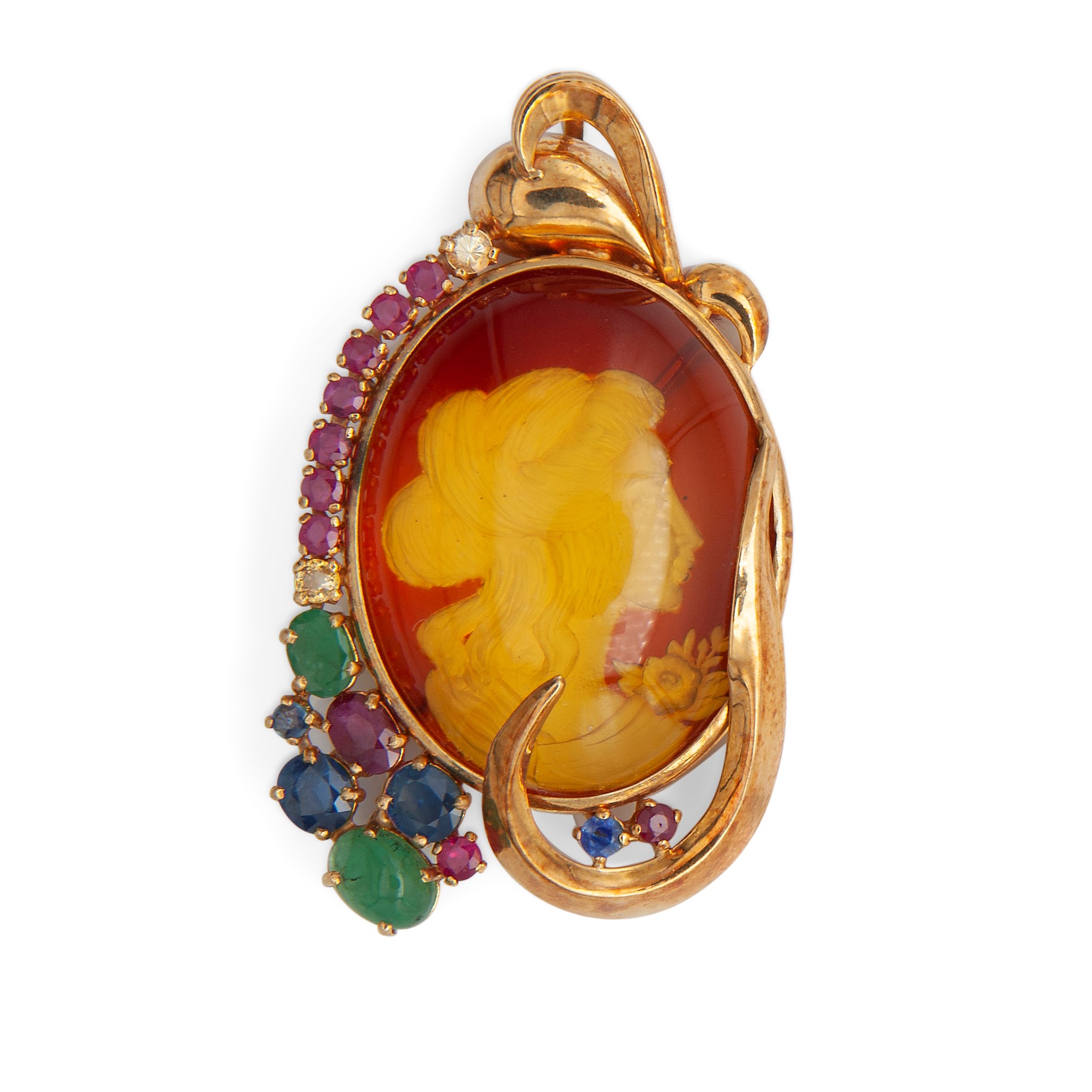 Pendente con cammeo più zaffiri, rubini e smeraldi