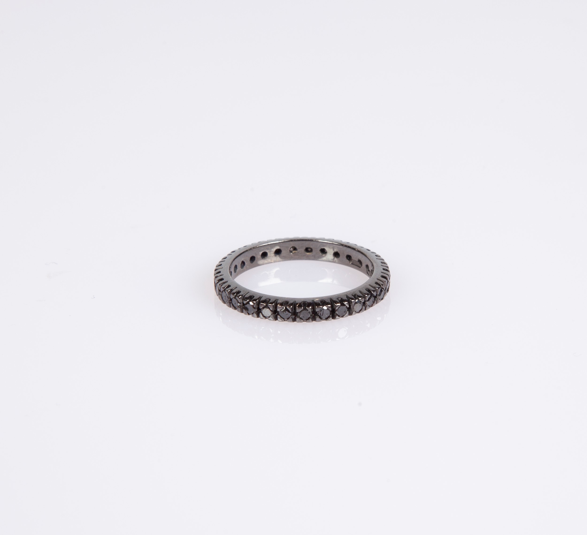 Oro nero 750/000, diamanti in taglio rotondo brillante fancy black ct. 1,10 ca. Peso complessivo gr. 3,50.