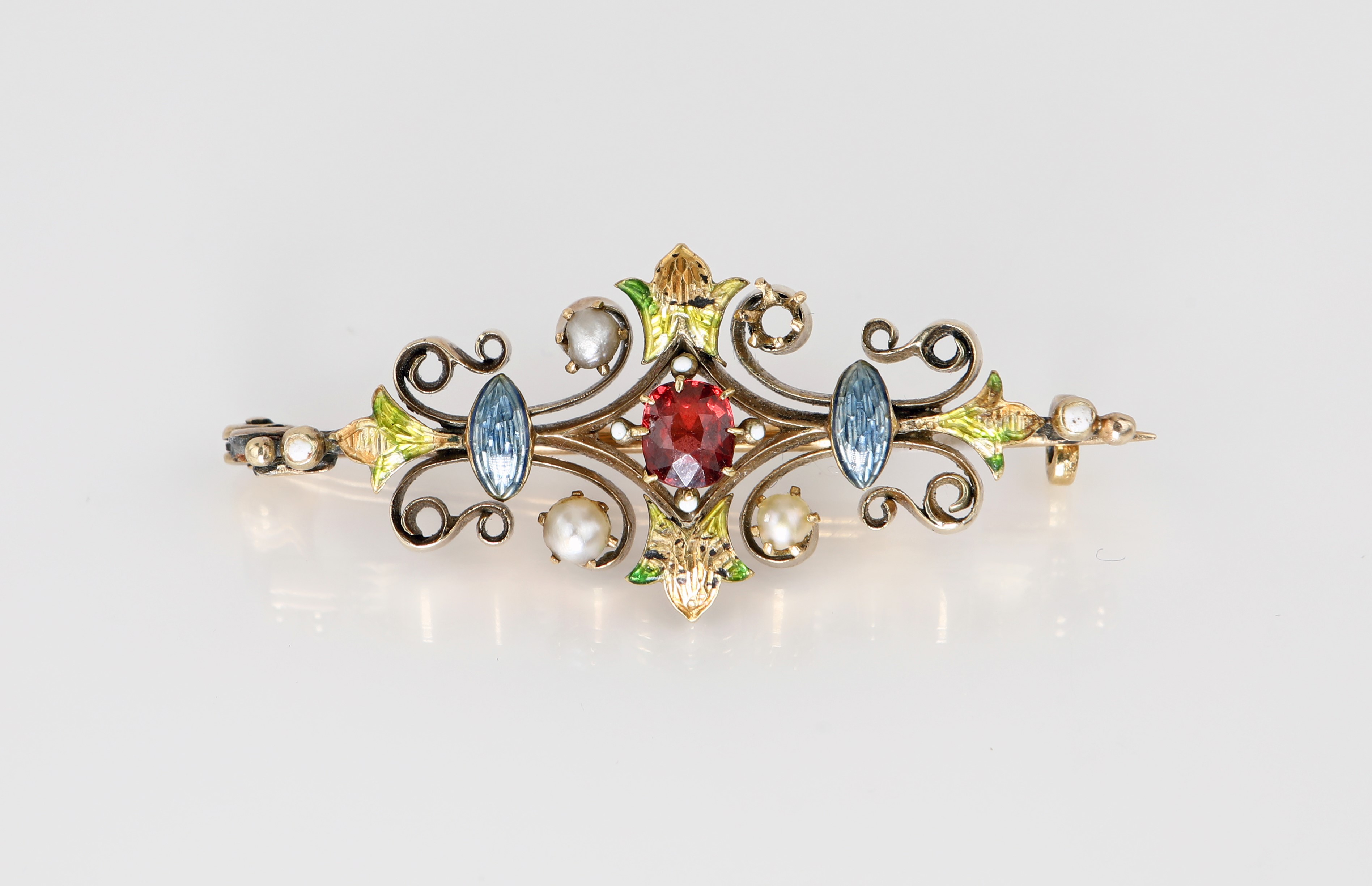 Oro giallo 750/000. Peso complessivo gr. 4,5. Perla mancante.